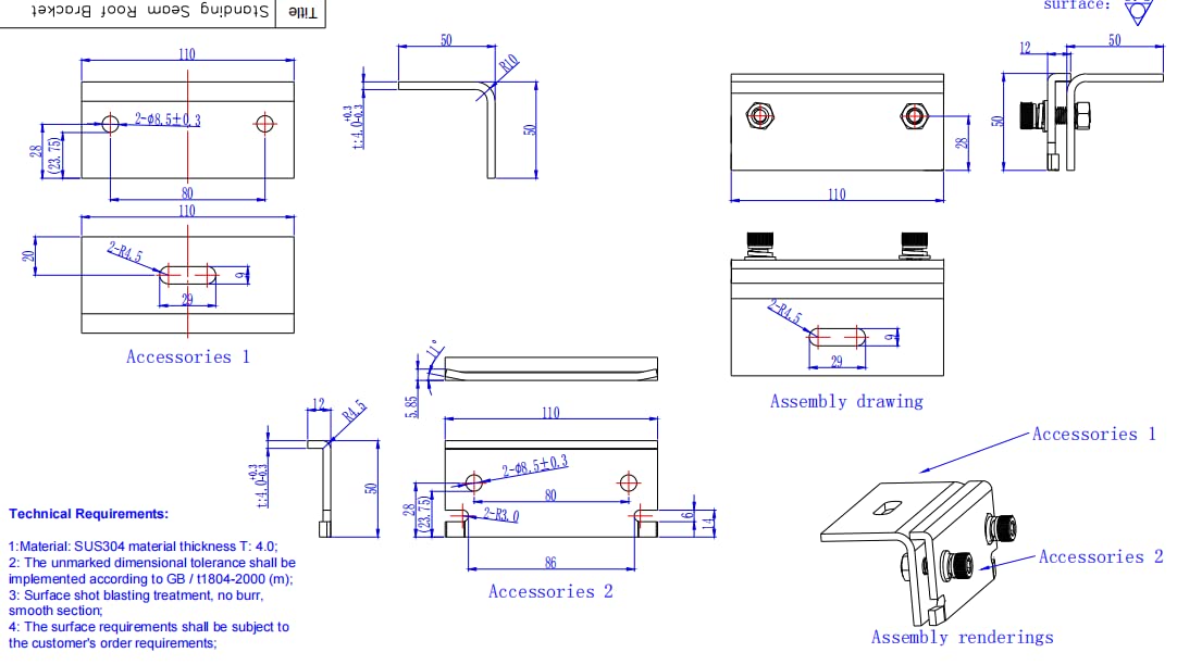 ["Wide Application: The structure is Standing Seam Stainless Steel SUS04 Solar Mounting Tile Roof Hook Clamp for Roofing Sheet, with the quality of corrosion resistance, light weight, and strong intensity. It can be used in extremely poor installation conditions.","Compatibility: The clamping range is 6 mm and suitable for most roofs. The structure can not only fit various PV kits, but also work with various PV arrays that can be swapped out at will.","Safety and Reliability: Load-bearing capacity, wind resistance, and seismic resistance have been adequately considered. All of these features have been extensively tested to ensure the system's safety.","Easy Installation: Most parts can be pre-assembled at the factory, saving not only installation time but also costs.","Flexibility: Considering design flaws, the structure has been well designed to be easily adjusted."]