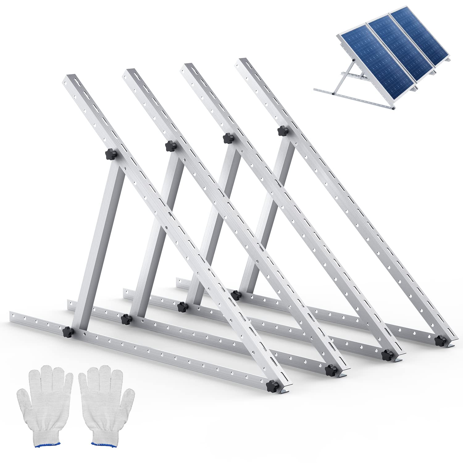 ["Versatile: Stouchi Universal solar panel mount can be used on flat roofs, RVs, balconies, boats, motorhomes, sheds, or any flat surface. This solar module mount is suitable for modules from most solar module brands.","DURABLE MATERIAL: The Stouchi balcony solar plant mount is made of high-quality aluminum alloy and the surface is high-quality anodized. All fasteners are made of stainless steel. High-strength corrosion protection properties.","EASY TO INSTALL: This flat roof PV mount is installed with stainless steel fasteners and precise hole positions. Comes with a pair of gloves for quick installation and removal.","Adjustable Angle: You can choose a suitable lighting angle for the solar panel by adjusting the angle of the solar module stand to tilt towards the sun instead of lying flat on the ground, which can increase the efficiency of the solar panel by 25% or more.","Package Includes: 4 pieces of solar mounts"]