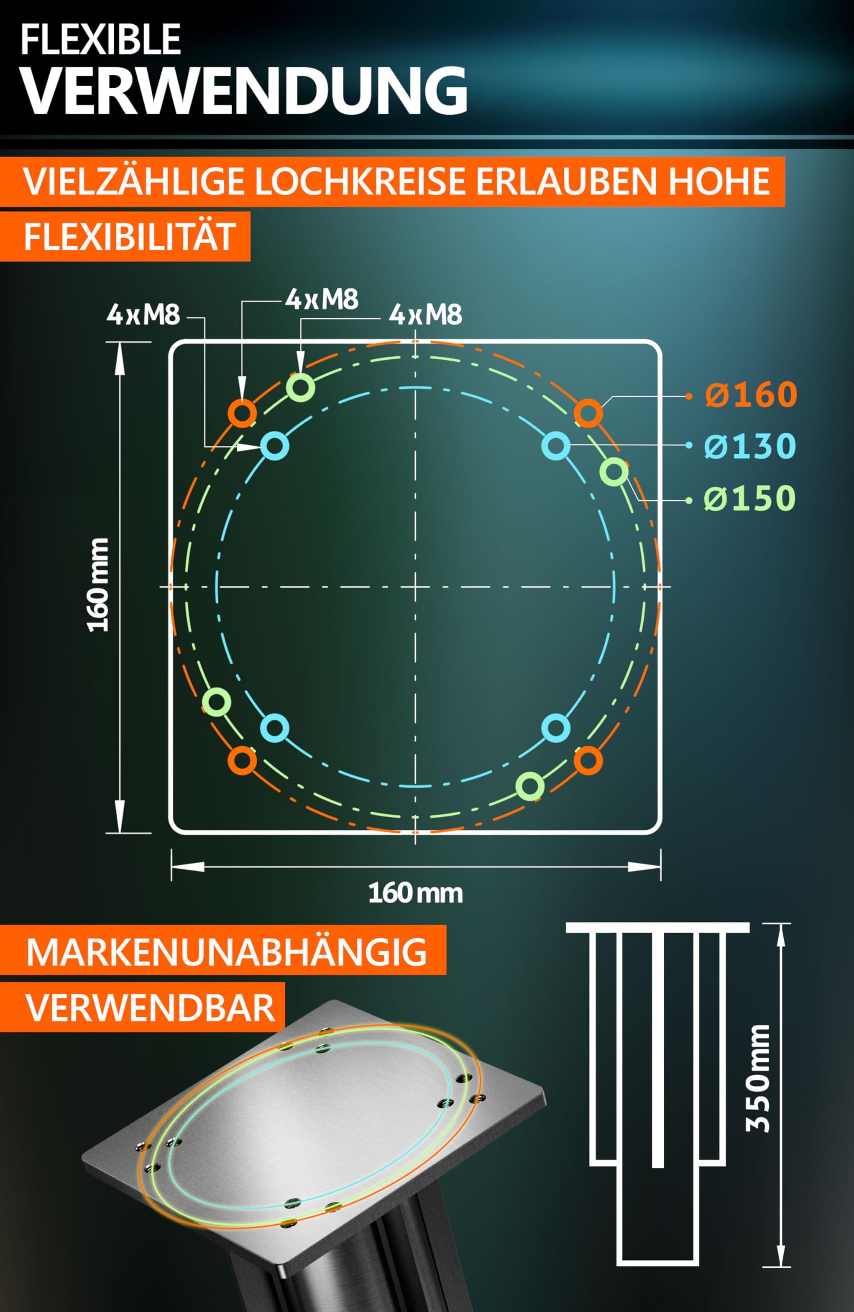 VERSATILE USE - Due to numerous hole circles, the umbrella base for concreting can be used completely flexibly and compatible with most brands as a stand for cantilever umbrellas.