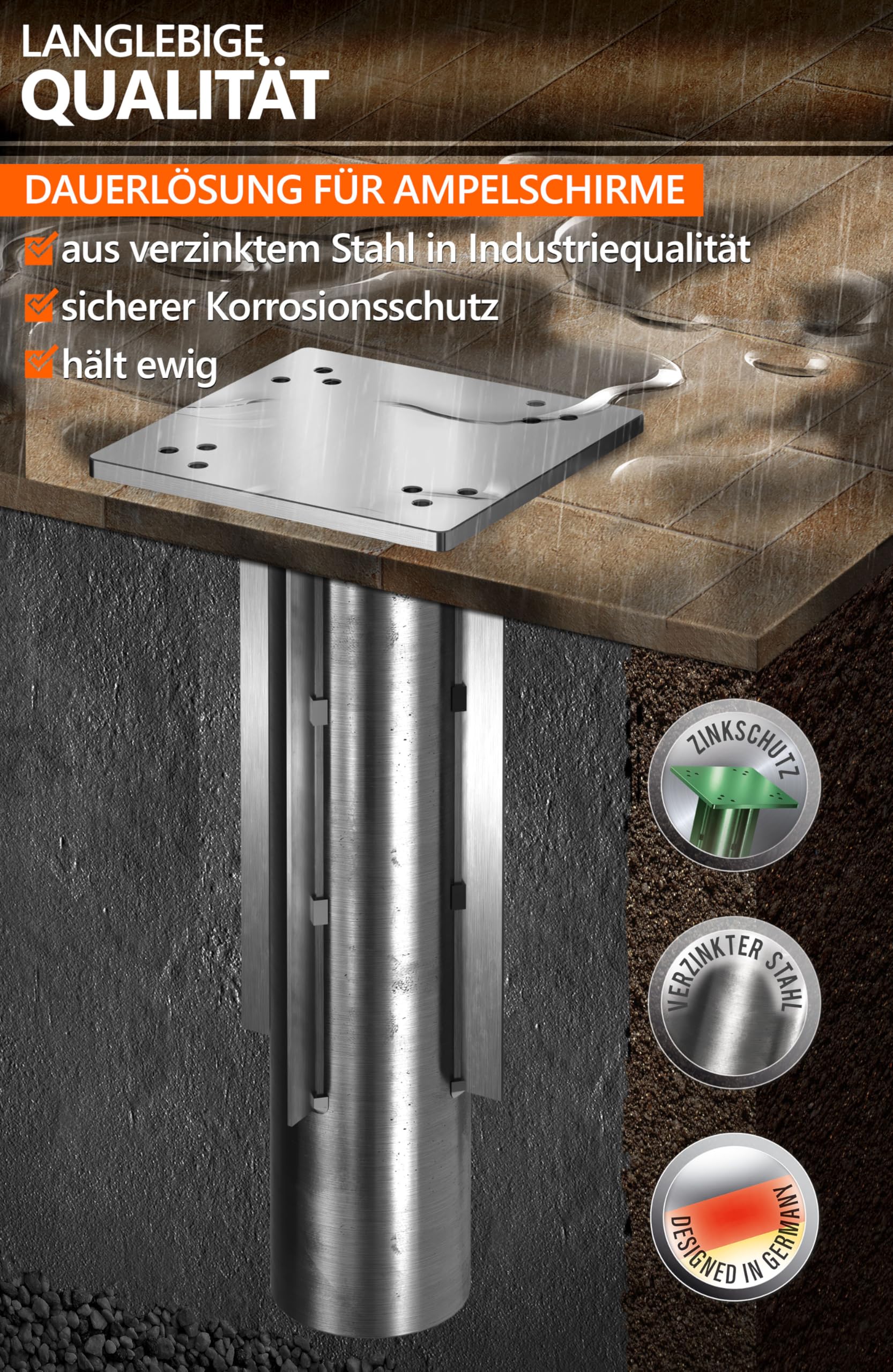 4smile Ground Sleeve Umbrella - Ground Anchor Cantilever Umbrella with base plate for embedding, Timeless quality - Universal Parasol stand Cantilever umbrella, load capacity up to 500 kg