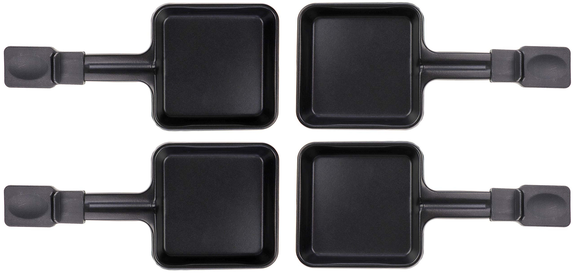 4x Raclette Pans 23178 10x10cm, Extra Long Handle, Universal for Raclettes (dimensions in the text)