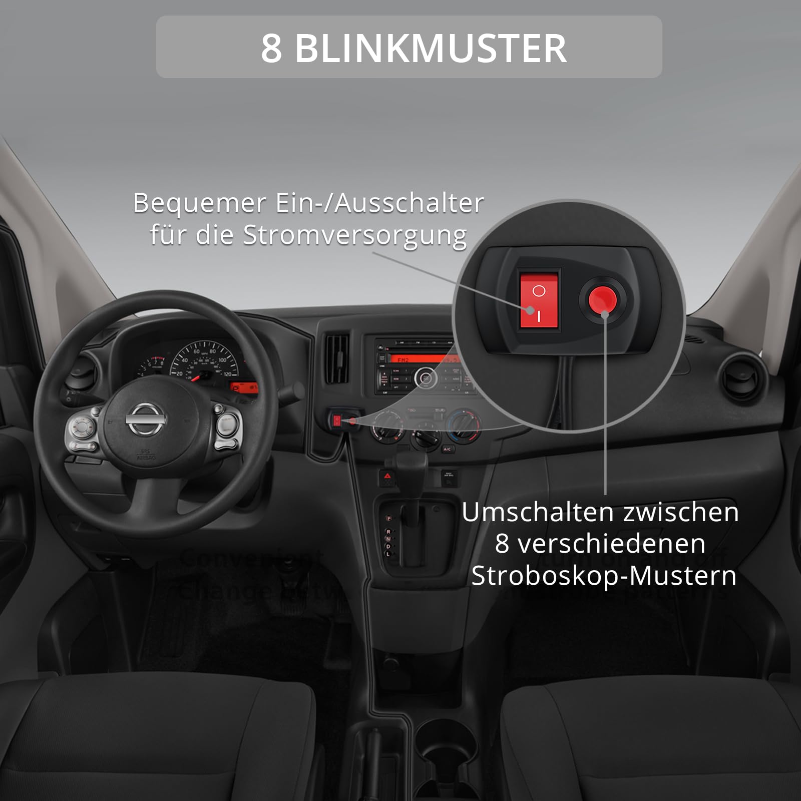 ["Select from 8 blinking modes with 6.5ft cable. Super bright and durable, with inline on/off switch and pattern change switch. The 6.5ft cable makes installation more convenient.",