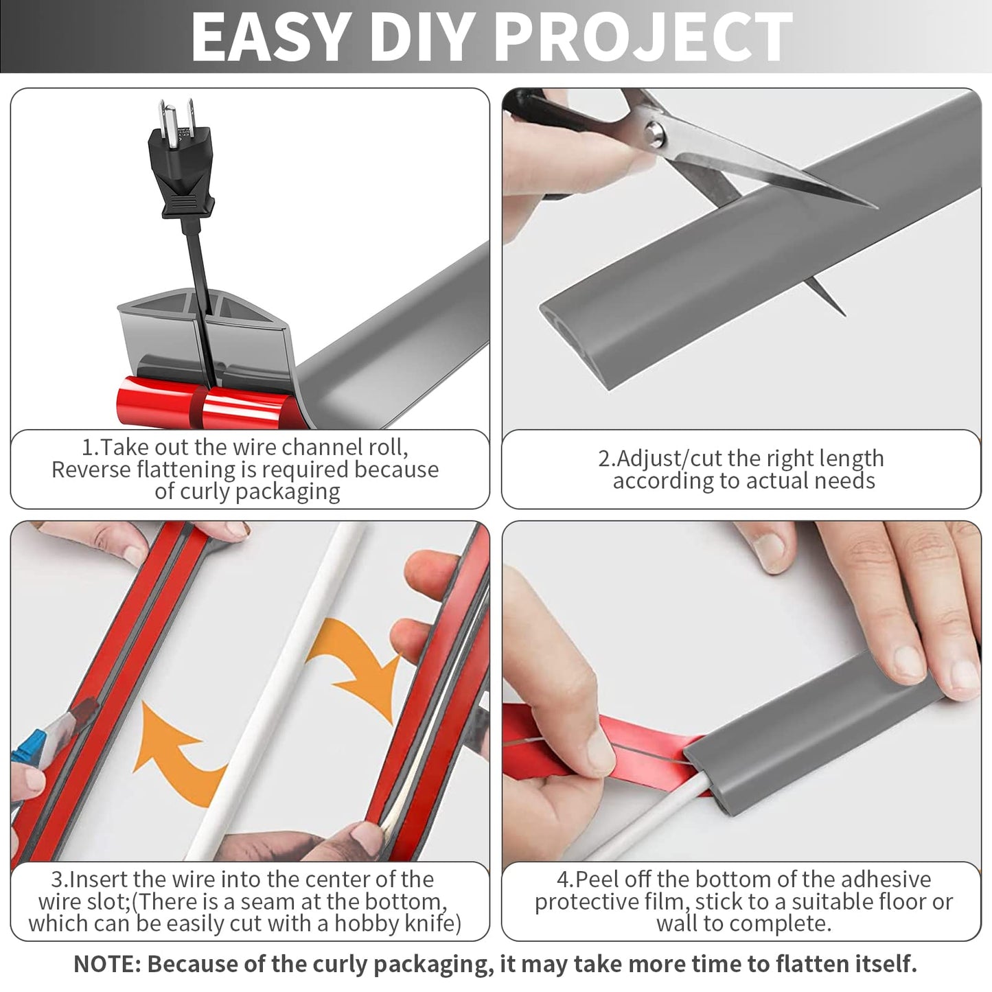 "EASY TO INSTALL": Cable channels can be easily trimmed with saws or scissors for length and shape at the joints. Installation is easy to handle, floor cable bridge self-adhesive, the cable channel with high-performance adhesive tape, no electrical competence is required for installation, you simply peel off the self-adhesive cover and stick it to the floor or walls, without damaging your floors or walls;