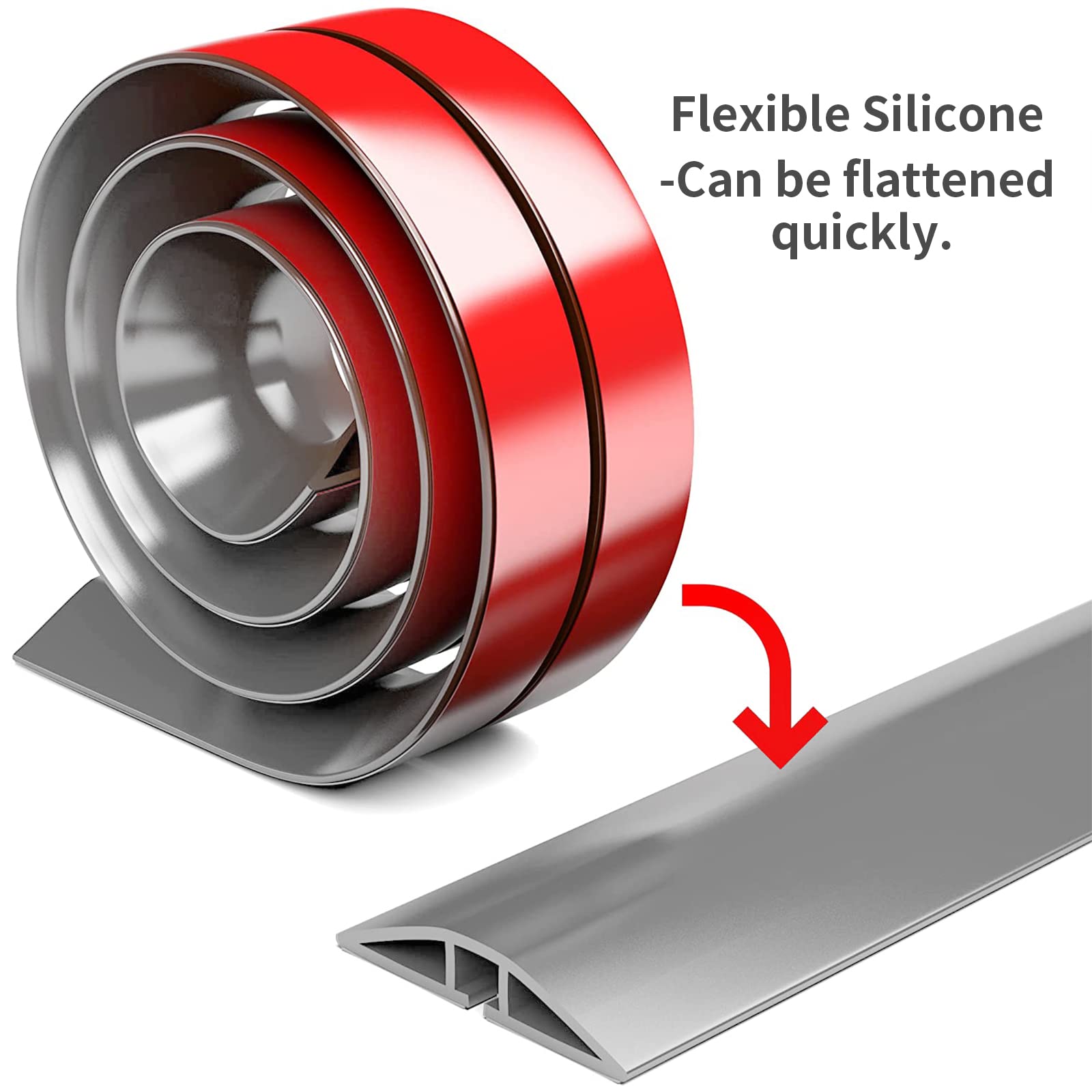 5 meter self-adhesive cable channels, flexible small cable duct, floor cable bridge, cable cover, cable protection, cable duct easy to cut installation for all power cables home, office, school, warehouse (Gray)