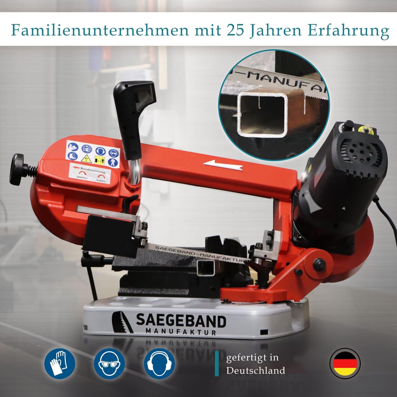 "✅ 25 YEARS OF EXPERIENCE: Manufactured by a German family-owned company with 25 years of experience in the bandsaw industry. Our bandsaw blades guarantee the highest reliability and are compatible with all major manufacturers.