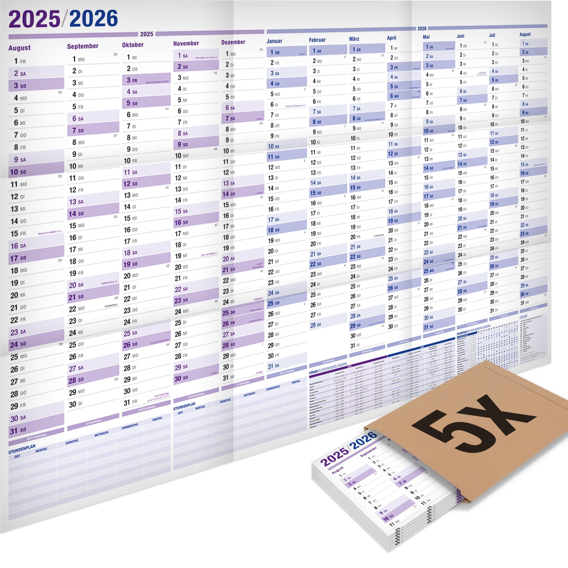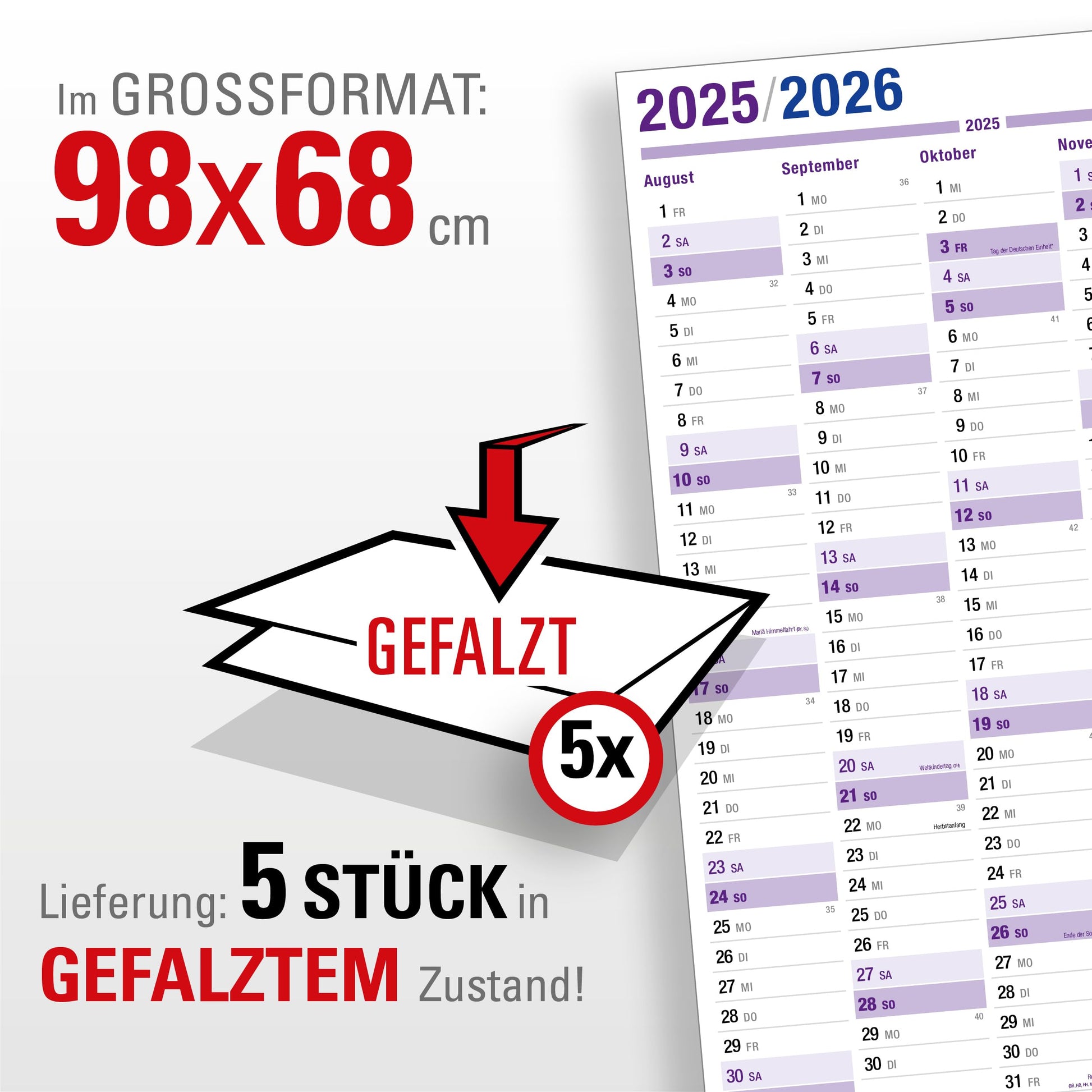 5-pack: Yohmoe® XXL wall calendar 2025 2026 in 98x68 cm format, folded. Ideal as a year planner 2025/26 or school year calendar 2025/2026 wall calendar.