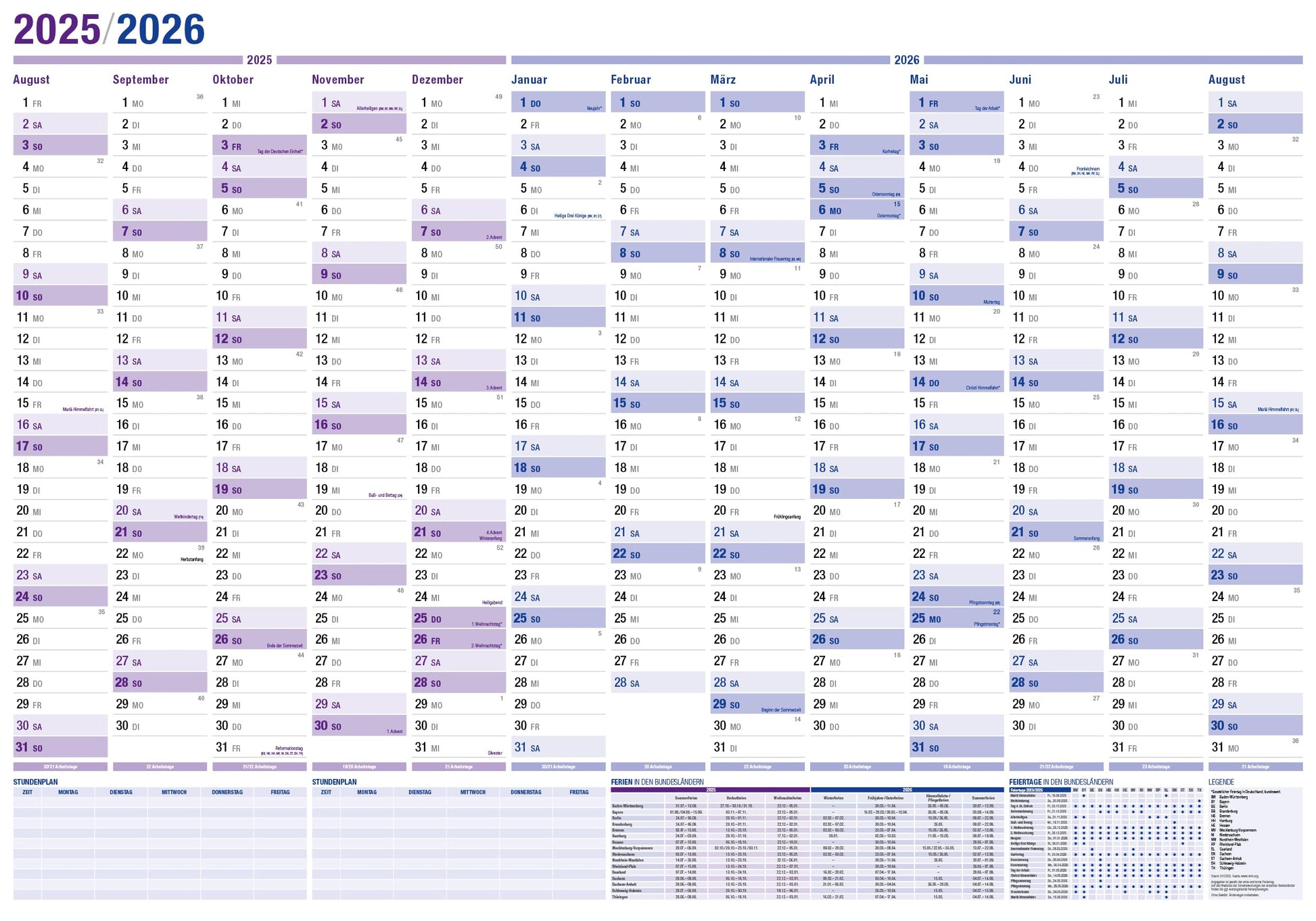 Made in Germany: Design, printing, and processing of our 2025 2026 school calendar wall take place in Germany. CO2 reduction through short delivery routes.
