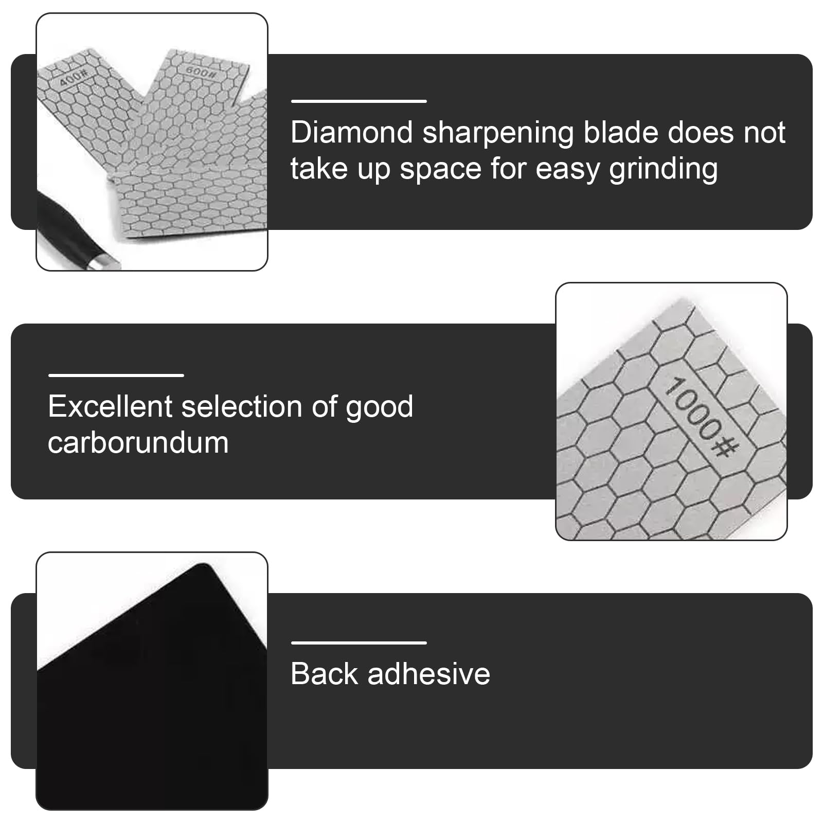Sturdy diamond sharpening plate: The diamond sharpening stones are made of high-quality diamond, providing not only hardness but also durability. The sturdy construction ensures long-lasting use.