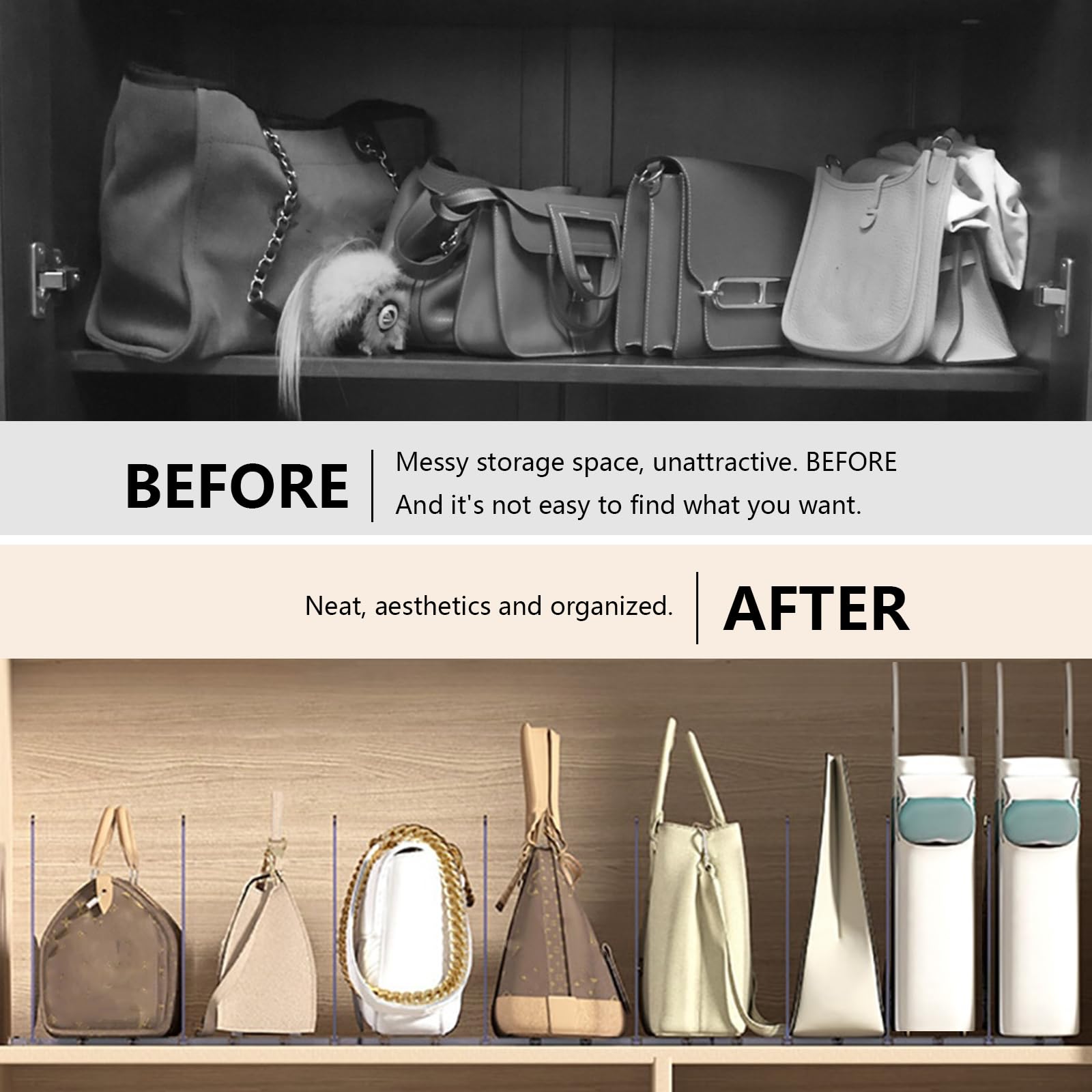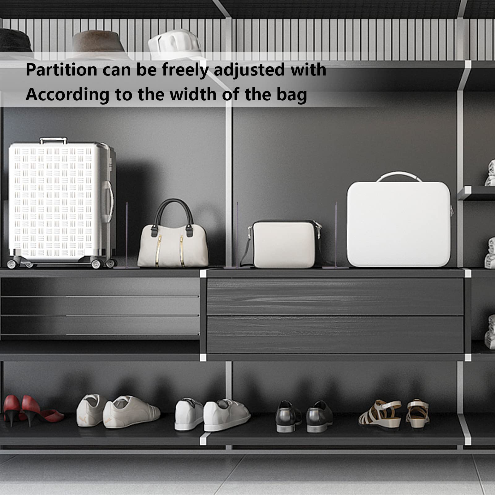 "Multipurpose: Dividers provide support and durability, keeping wallets and bags upright. Can be used for wardrobes. The dividers are suitable for cabinets with different surfaces such as wood, wire, glass, etc., as well as boards of different thicknesses. Ideal for storing books, clothes, towels, linens, wallets, handbags, shoes, sweaters, and more."