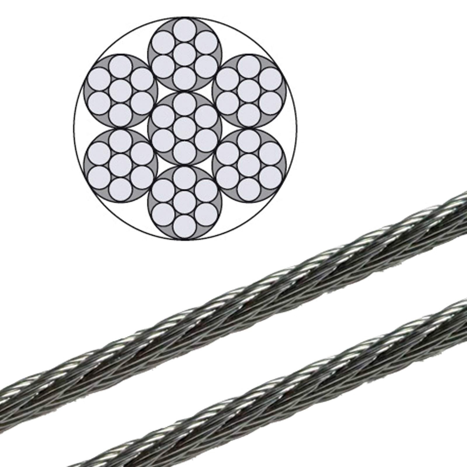 ["50m high-quality stainless steel wire rope in construction 7x7","Diameter: 5.0mm - Minimum breaking load 1435kg","Construction 7x7, EN 12385-4:2002 (formerly DIN 3055) medium flexible wire rope","Material: Stainless steel V4A - AISI 316 - 1.4401","suitable for guy lines of any kind in indoor and outdoor areas","versatile for example suspending lamps and pictures, securing exhibition goods, supporting climbing plants and greening facades, and many other applications"]