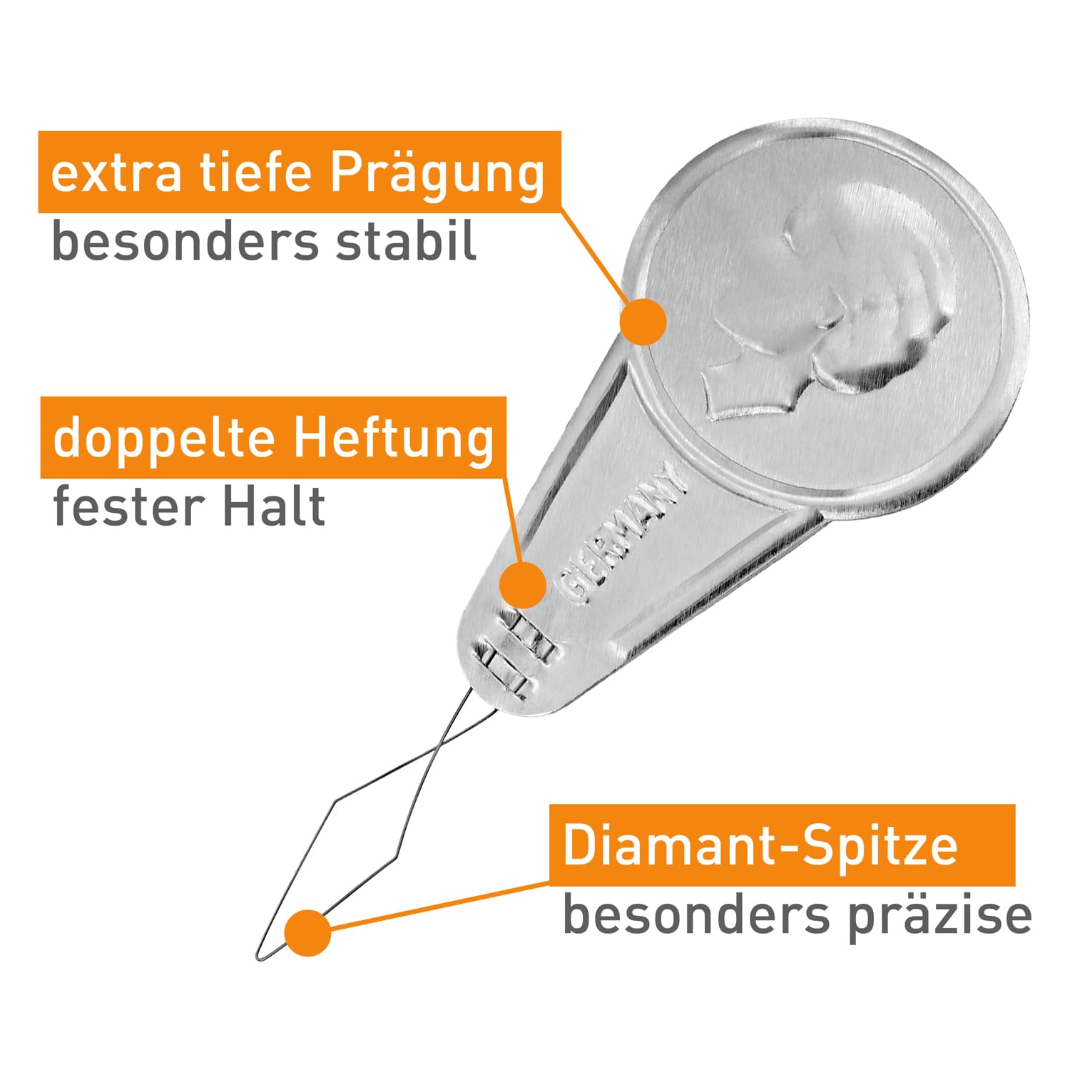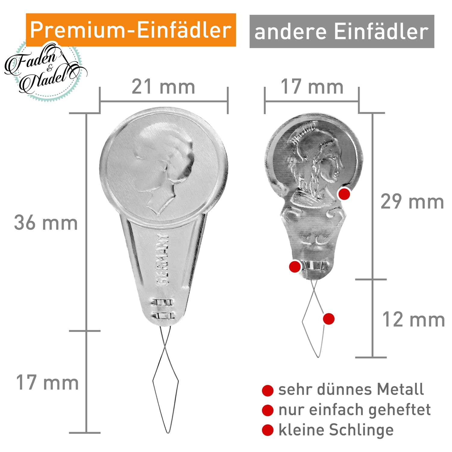 "The proven classic: 50 silver needle threaders with nostalgic embossing"