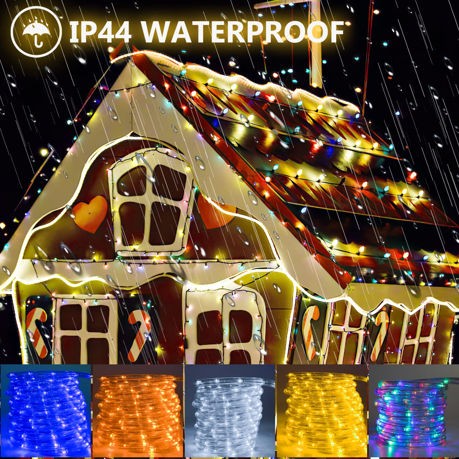 50m LED strip light, 1200 LEDs rope light 8 modes, outdoor LED tube light chain with timer for indoor outdoor garden party Christmas decoration - warm white