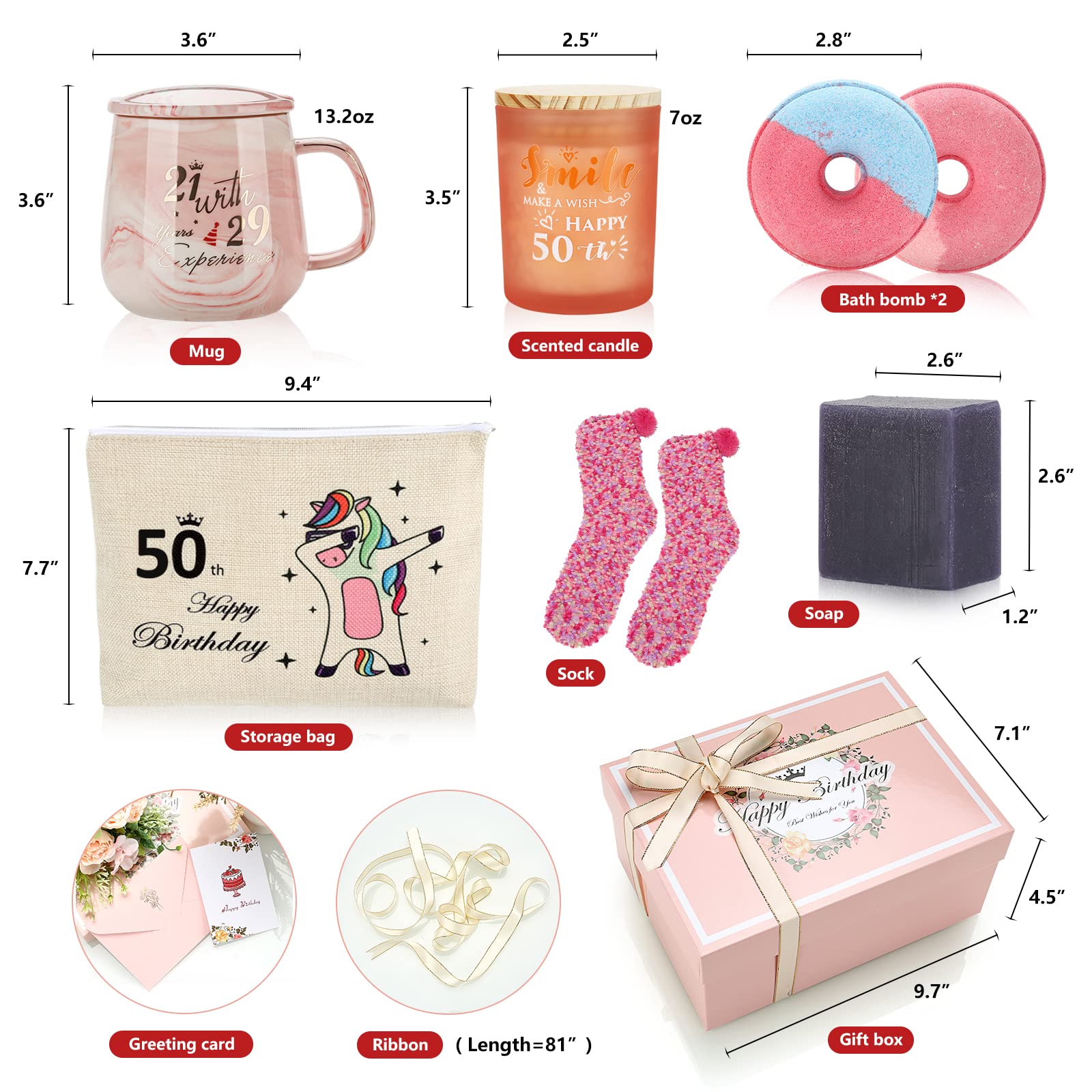 50th birthday women's birthday gift for women, 13oz coffee mugs cups scented candle bath bombs gift set women, birthday gift for mother wife sister best friend 50th birthday