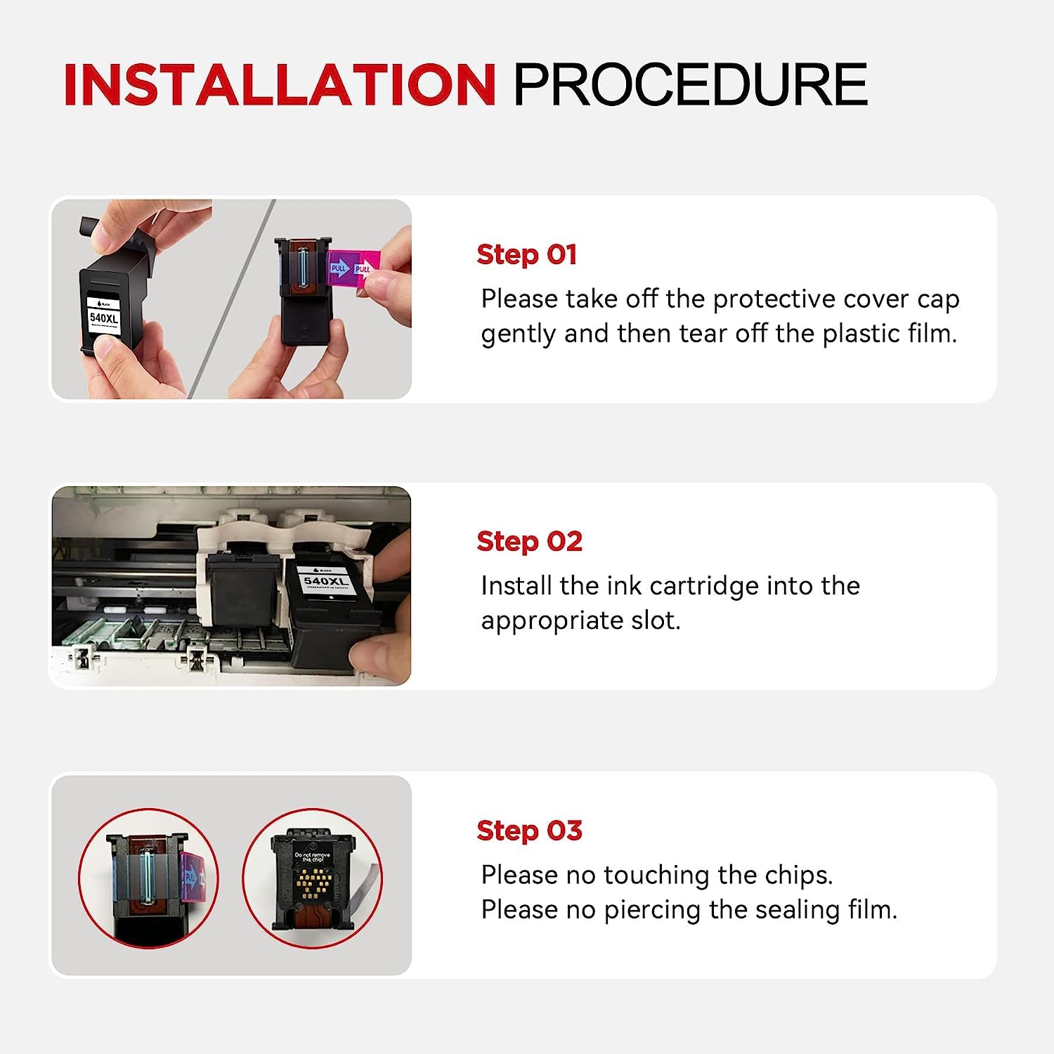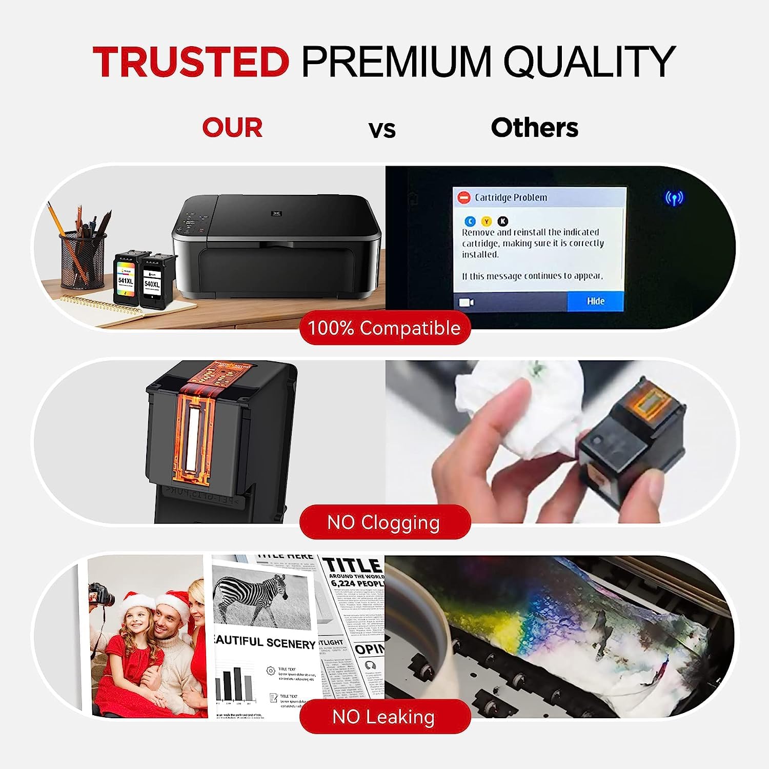 ["Product Name: High yield 540XL 541XL multipack ink cartridges Compatible with printer cartridges canon 540 541 (Not Canon Original).","Estimated Page Yield: 630 pages for the black PG-540XL ink cartridge, 560 pages for the tri-color CL-541XL ink cartridge (based on 5% coverage).","Compatible Model: Compatible for Canon Pixma TS5150 cartridges TS5151 MG3500 MG3550 MG3600 MG3650 MG3650s MG4100 MG4150 MG4200 MG4250 MG3100 MG3150 MG3200 MG3250 MG3255 MG2100 MG2150 MG2200 MG2250 MX374 MX375 MX395 MX435 MX475 MX515 MX525 MX535 MX455.","Package Content: 1 Black PG-540XL, 1 Tri-Color CL-541XL, Replacement for Canon 540 and 541 ink cartridges, 1 Product Manual.","Feature Benefit: AUMOK compatible for Canon printer cartridges 540 541 xl undergo strict quality control to provide you with clear and vibrant colors, smooth printing, and reliable prints."]