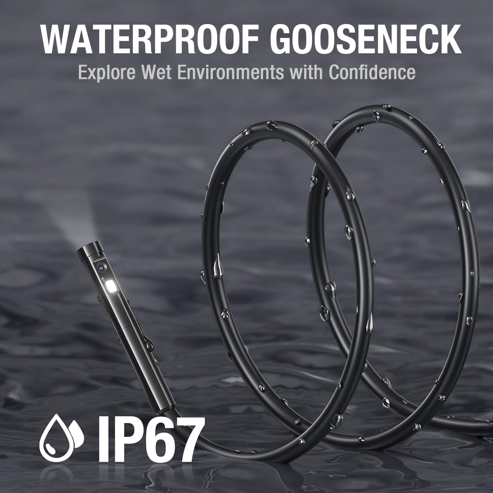 "5 mm Dual Lens Endoscope Camera with Light - The endoscope camera features a highly sensitive camera. This dual endoscope camera has a smaller diameter than other similar dual lens cameras on the market, making it easier to access tight sewer pipes, whether you are using this product for overall inspection or detailed inspection, it can provide you with clear image quality. The focal length of the side camera is: 20-50mm, front camera is 30-80mm."