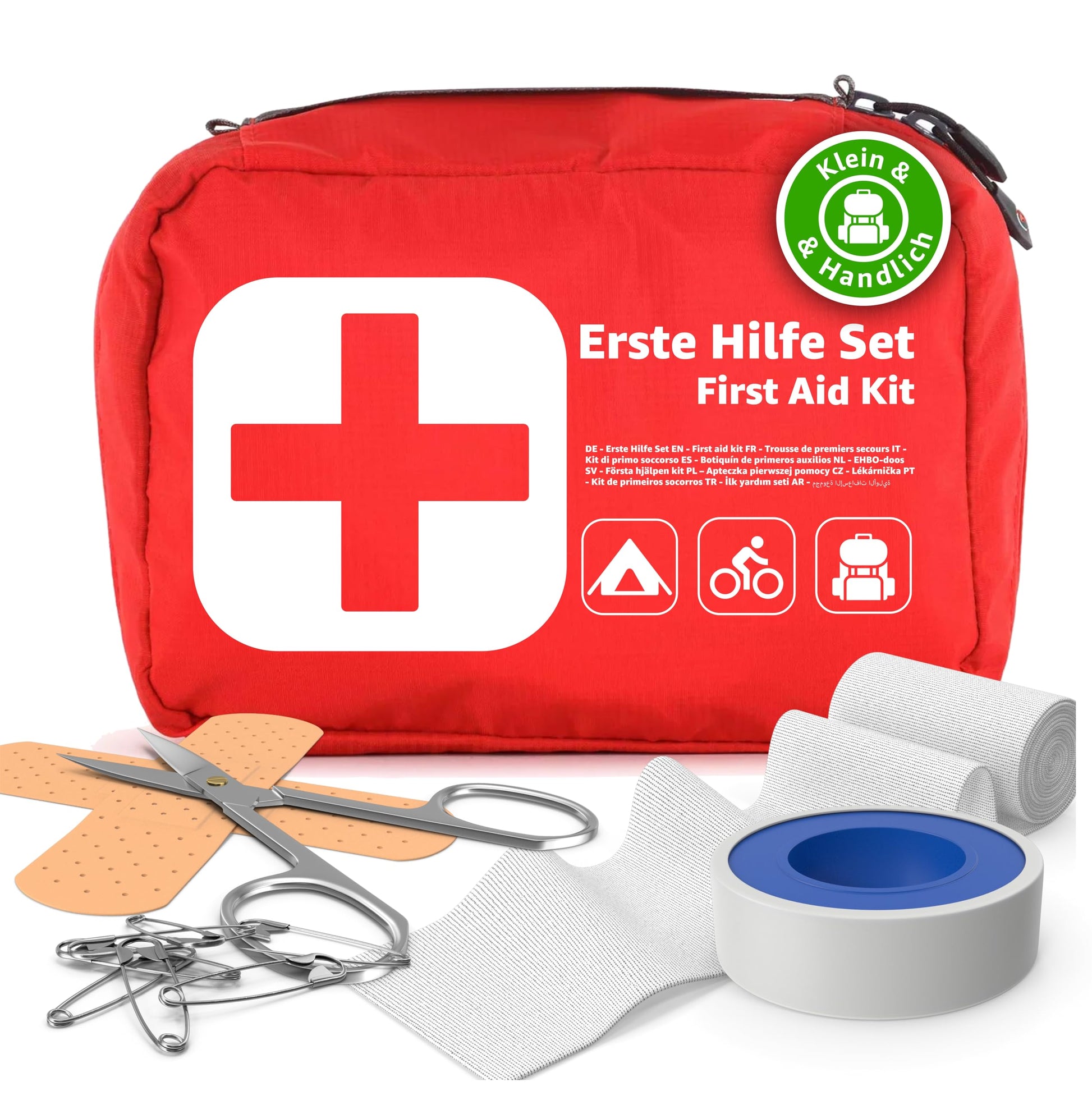 ["COMPACT SIZE: The set is small and light, making it easy to carry in a bag, backpack, or even in a bike bag without taking up much space.","VERSATILE EQUIPMENT: Despite its compact size, the kit contains all the essential first aid materials needed for most minor emergencies.","IDEAL FOR OUTDOOR ACTIVITIES: Designed for outdoor activities, it provides essential tools needed for injuries or accidents while hiking, camping, or cycling.","QUICK ACCESS: The set allows for quick and easy access to all contents, saving time in emergency situations.","WATERPROOF PACKAGING: The packaging is often waterproof to protect the contents from moisture, which is especially useful for outdoor activities.","EASY TO CARRY: The lightweight and compact size make it easy to carry the set with you at all times without it being a burden.","SUITABLE FOR ALL AGES: The kit is designed to be suitable for both children and adults, making it a great choice for family outings.","EASY APPLICATION: The materials are user-friendly and easy to handle even for laypersons, which is helpful for self-care or assisting others.","RELIABILITY: High-quality products in the kit ensure reliability and effectiveness in providing first aid for injuries.","IDEAL FOR EMERGENCIES: Provides the basic tools and materials to quickly respond to accidents, increasing safety during travel and outdoor activities."]