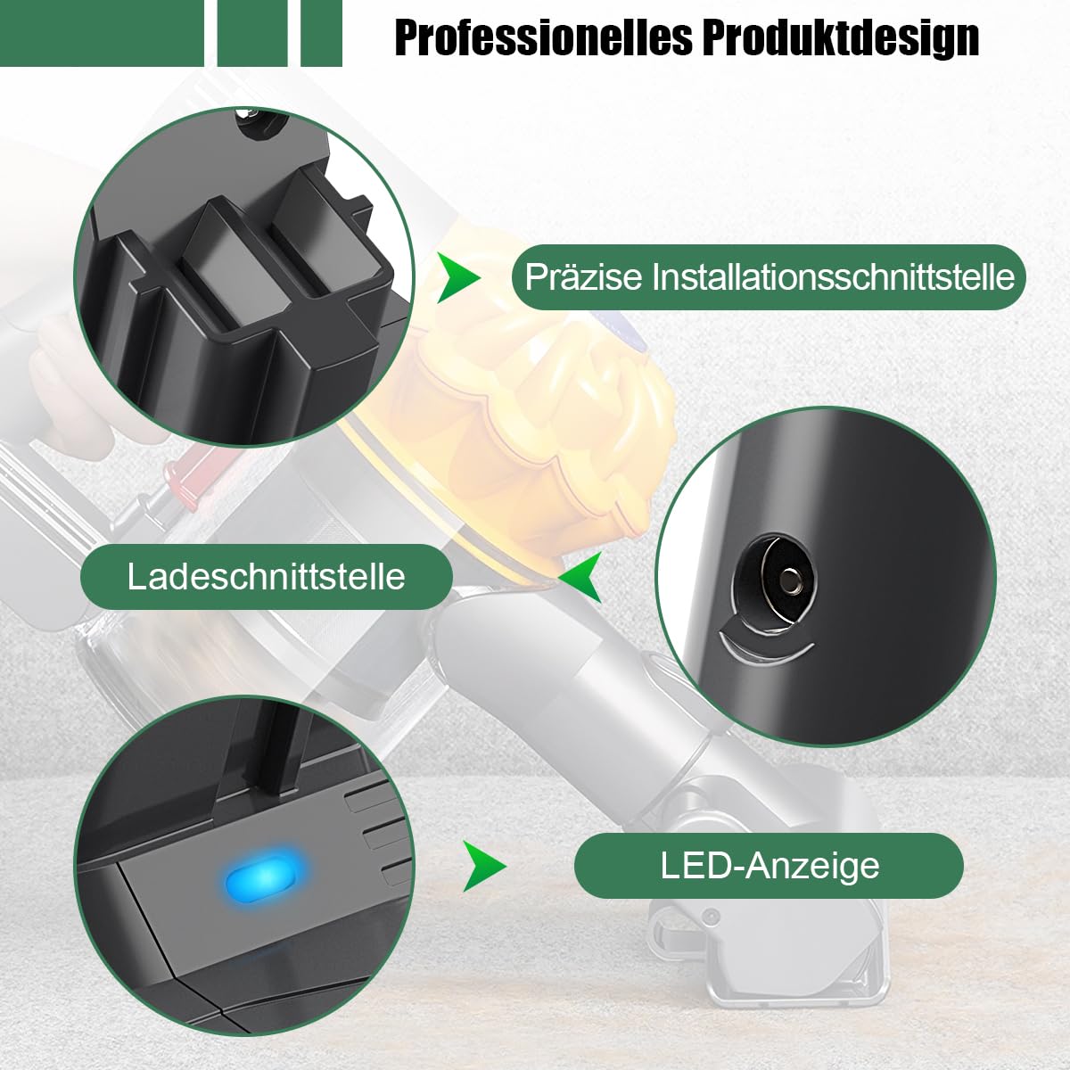 "【High Quality & No Memory Effect】It can be charged or discharged as needed without losing capacity. Maintains the V6 battery life cycle. The high capacity keeps your vacuum running longer than others. The LED indicator helps you assess battery status better. Cooper alloy interface, ABS PC plastic shell, and comes with a plastic cover that makes the interface dustproof."