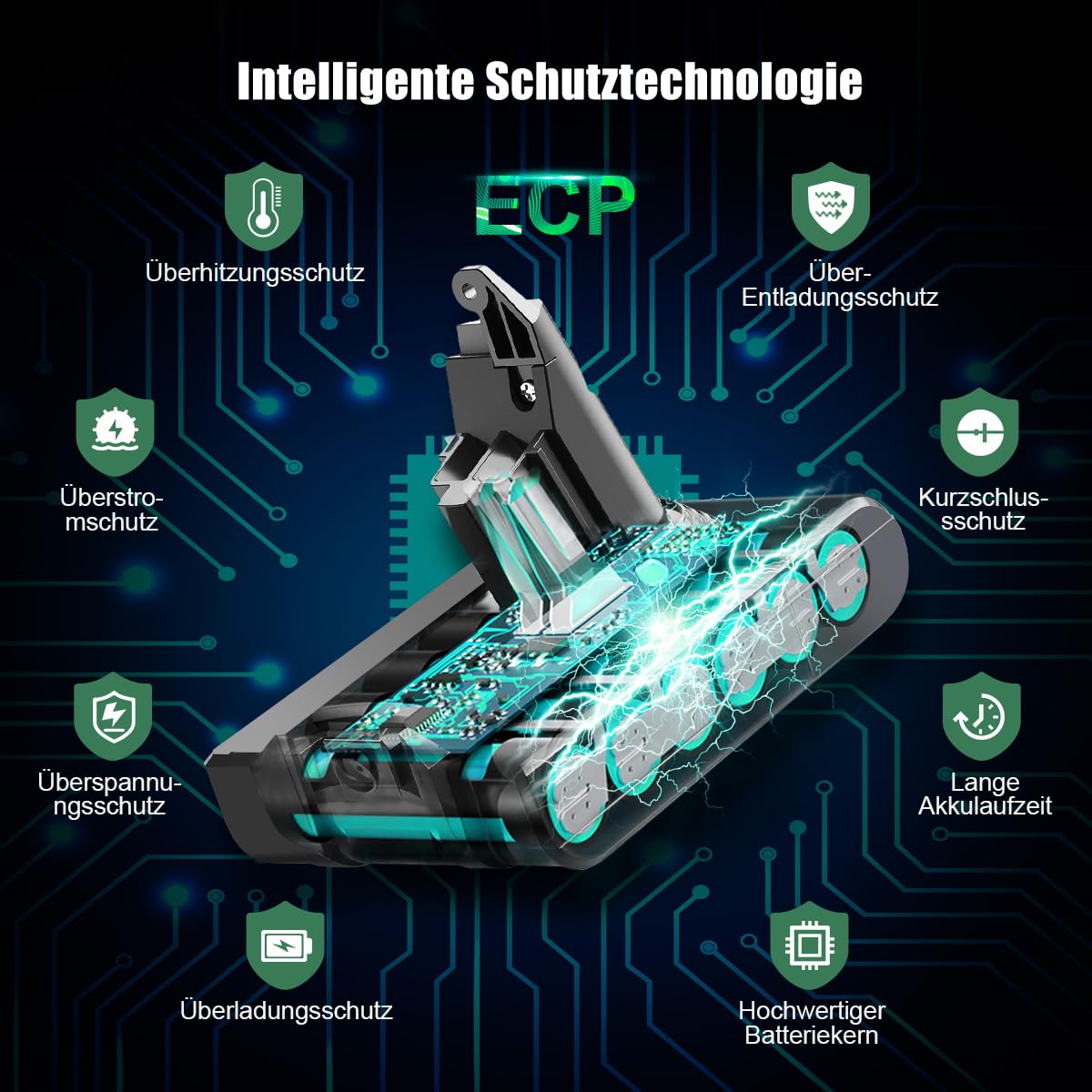 "【Higher Capacity and Affordable Price】BuTurepre Dyson V6 Replacement Battery has more capacity than the ordinary Dyson replacement battery (usually: 2200mAh-3000mAh), which has higher quality and longer working time. Intelligent protection chip with multiple protection systems."