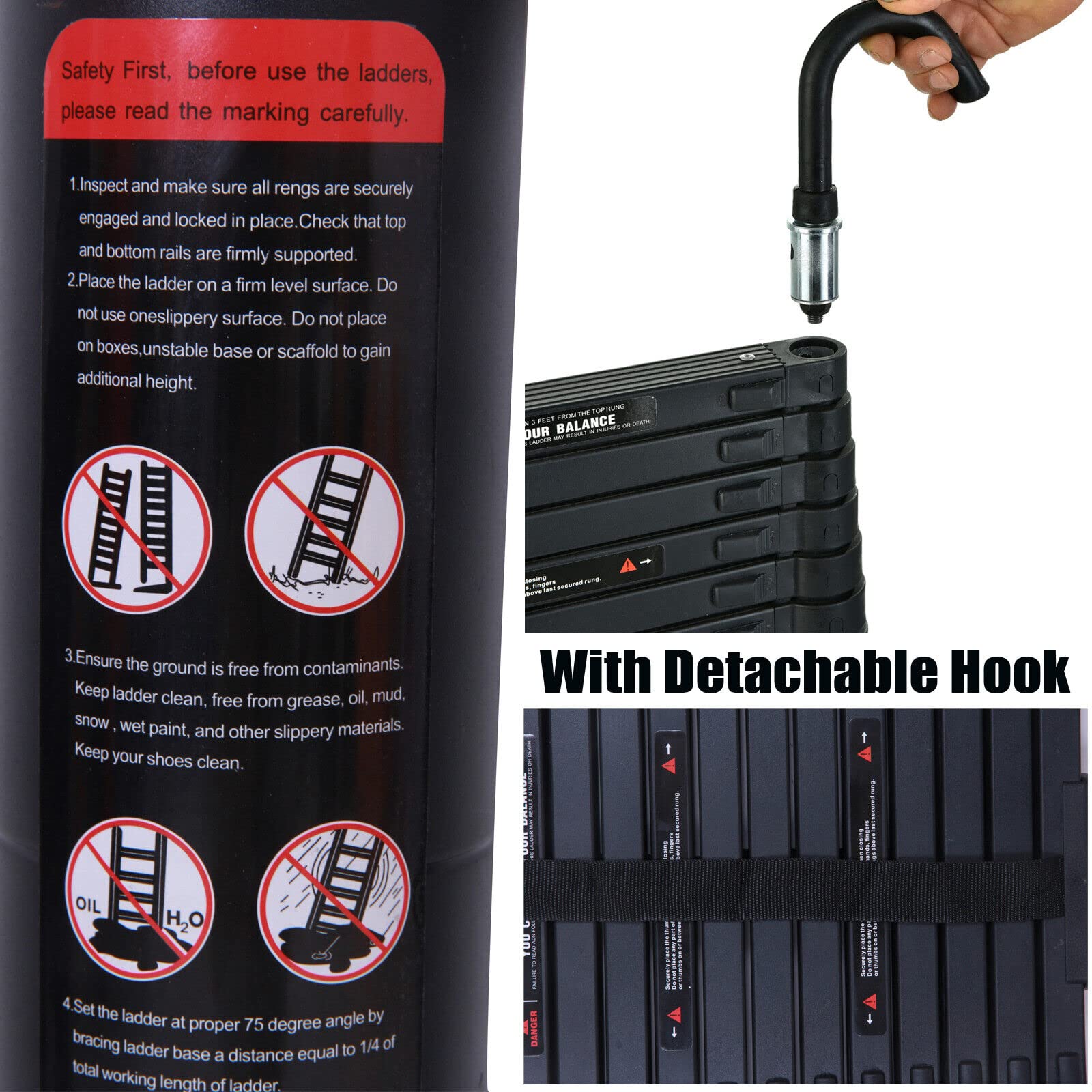 6.2m/20.34ft telescoping ladder with detachable roof hooks Multi-purpose folding black ladder, aluminum high telescoping ladder extension Foldable ladder, 330lb capacity, EN131 certified
