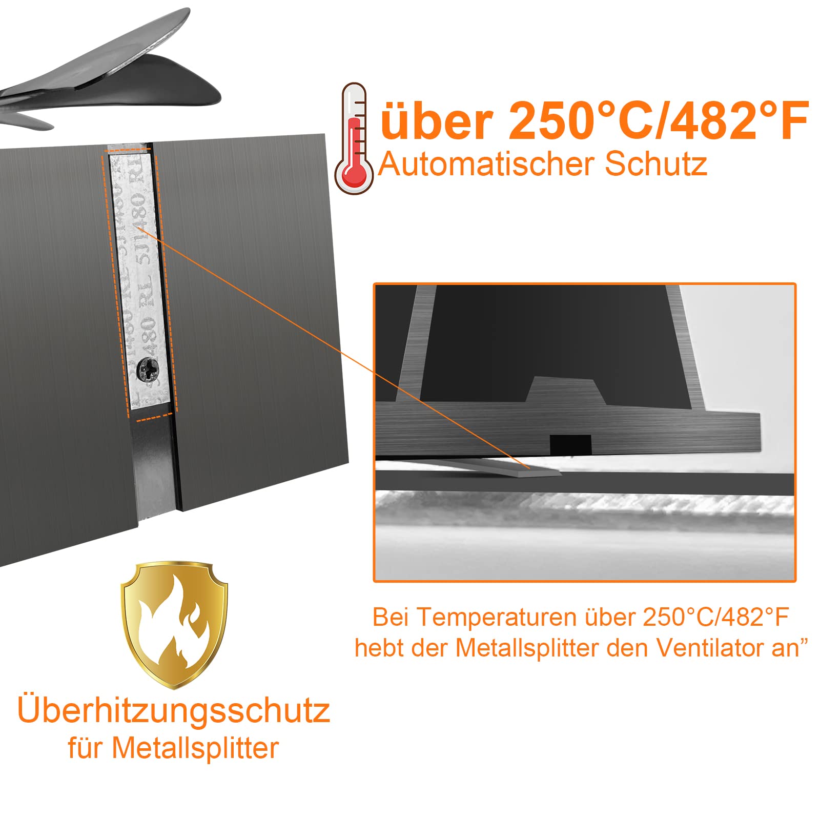 ["Environmentally friendly and energy-saving fireplace fan: If you own a fireplace or wood stove and want more warmth throughout the house but don't want to spend more on electricity, just buy this amazing heat fireplace fan.","No battery or electricity required stove fan: The thermal wood stove fan generates energy by converting the heat produced by the stove into electrical energy, and the power generation unit converts the heat energy into kinetic energy to drive the motor, and then the blades rotate.","Overheat protection fireplace fan: When the stove temperature reaches 140°F, the fan starts to rotate. When the temperature cools down, it slows down and stops. The fan base is equipped with a bimetal safety device. If the surface temperature exceeds 482°F, the fan stops rotating. It is recommended to wear gloves when removing the fan to dissipate heat and extend the product's lifespan.","Multifunctional stove fan: Suitable for all catalytic/non-catalytic stoves/fireplaces, such as gas, electric, pellet stoves, wood stoves, or wood-burning stoves.","Easy to use stove fan: Place the stove fan on a smooth and flat surface on top of the stove, near the side or back of the stove. The stove fan must be placed at least 4 inches away from the stove. It can operate when the stove surface is hot."]