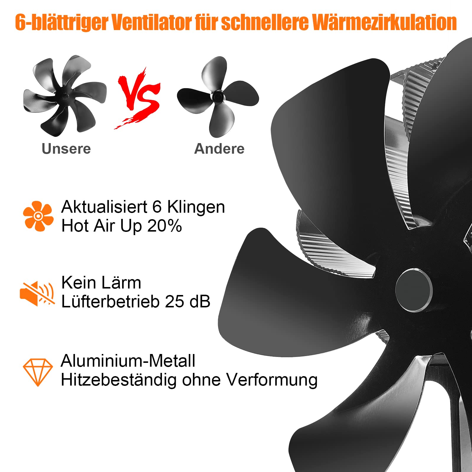 6-blade stove fan fireplace fan, no electricity needed for wood stoves and fireplace inserts.