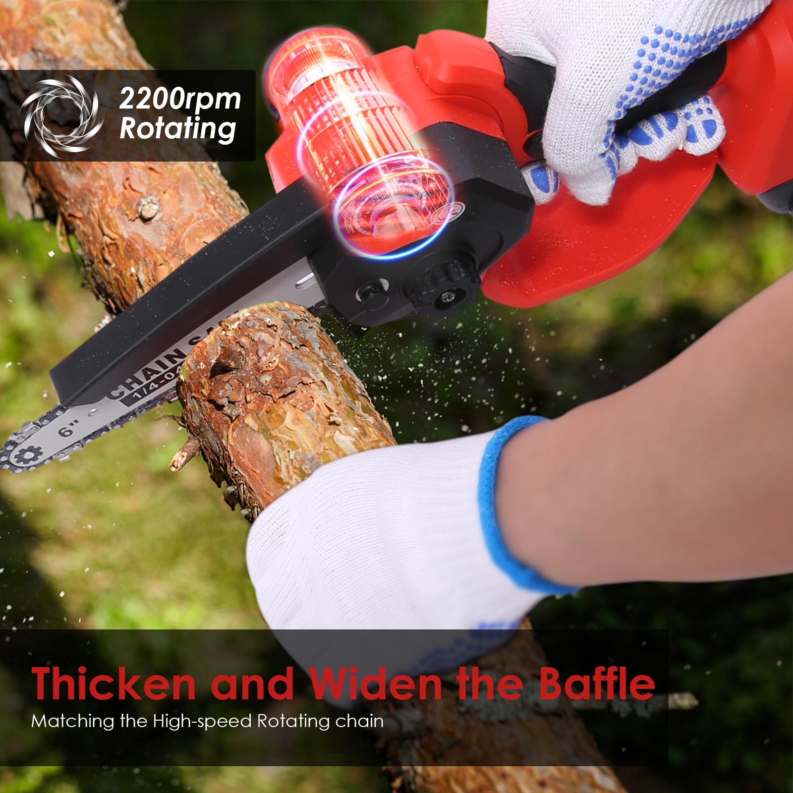 6 inch Mini Chainsaw with Battery, Aoresac Battery chainsaw with 2 Batteries and Chains, 800W Safety Button One-Hand Chainsaw for Hand Chainsaw for Cutting Branches and Garden