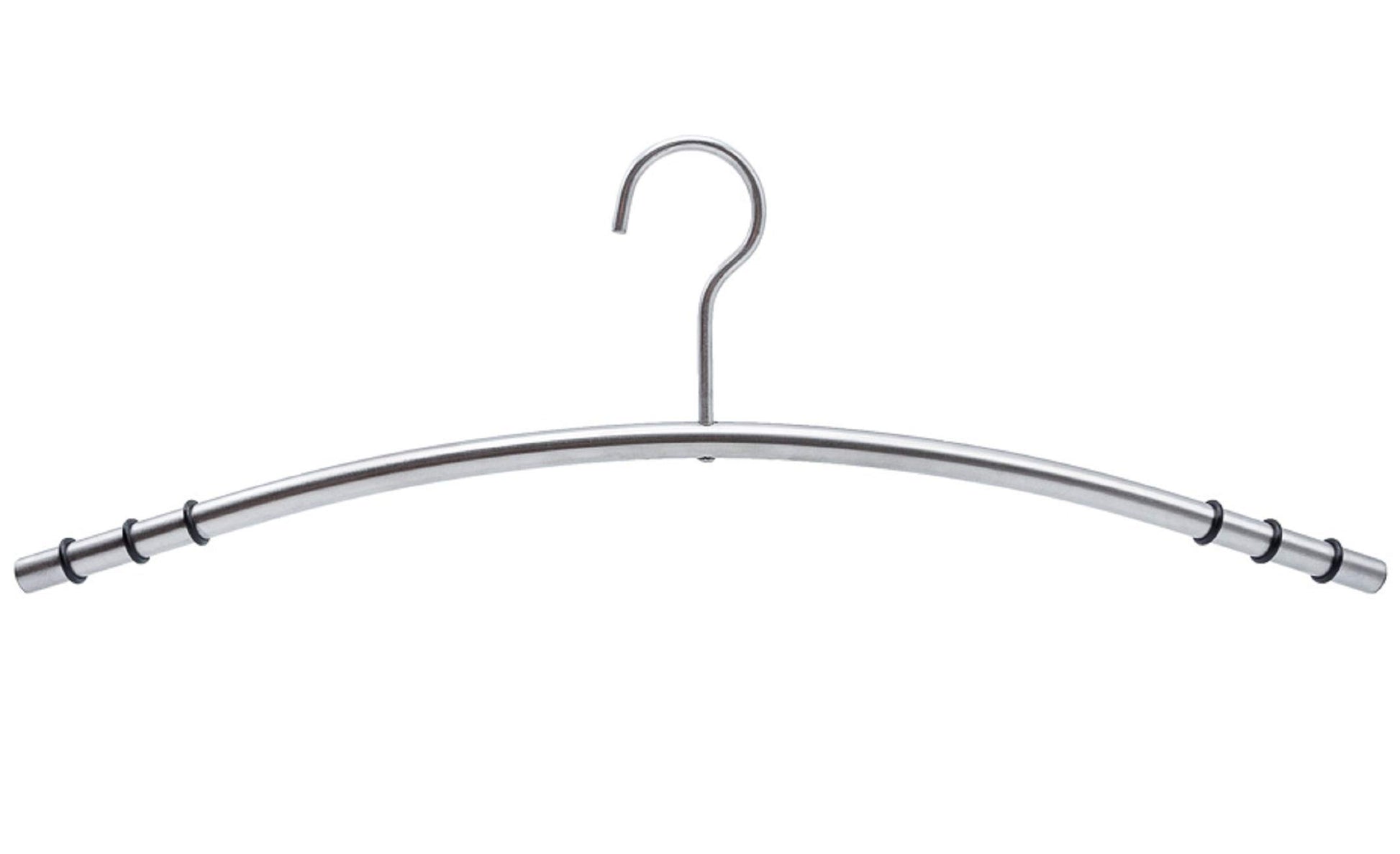"Non-slip: High-quality stainless steel hangers with anti-slip function. The silicone rings on both sides of the hangers prevent clothing from slipping.","Extremely durable: The hangers made of high-quality, robust stainless steel are very stable, to easily hang even very heavy jackets and coats.","No wrinkles: Thanks to the ergonomic shape, no wrinkles or deformations will form on the shoulders of your clothing.","Stylish design: The shiny finish allows clothing items to be beautifully hung side by side, creating order.","Contents: Metal hangers and a garment cover."