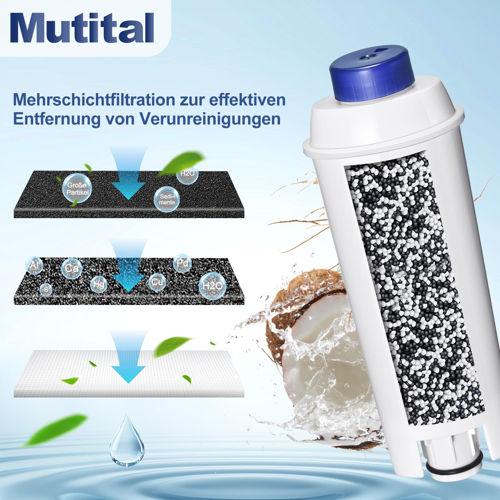 "✔️【Umweltfreundlich】Unlike other coffee machine filters, Multital filters can be used for more than 2 months. The pack of 6 lasts exactly one year. Multital coffee machine filters are made from natural materials and eco-friendly packaging. We focus on improving water quality and protecting your coffee machine.
