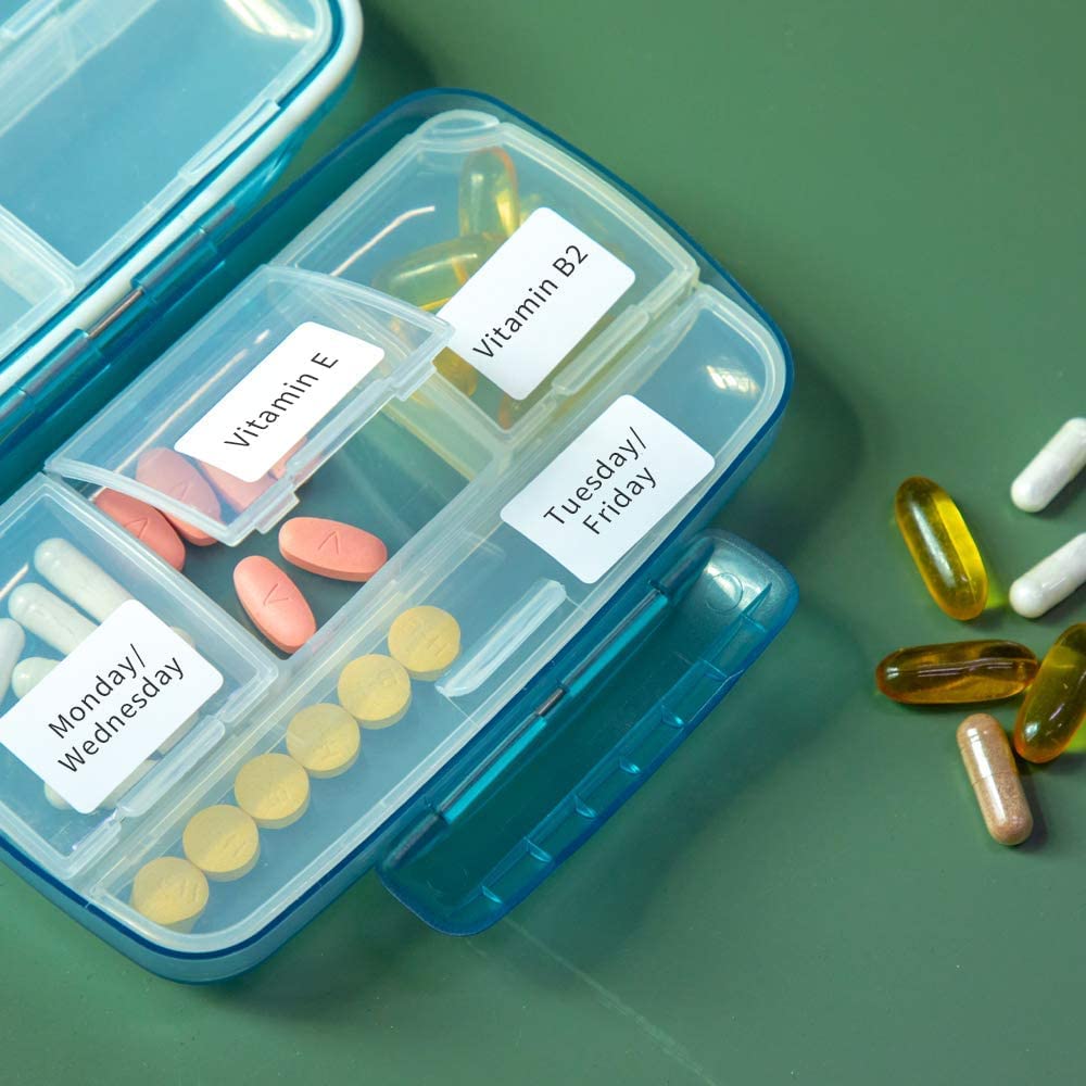 "Widely used: The high-quality label tapes adhere to plastic, paper, metal, wood, and glass, making them ideal for labeling office supplies, electronic accessories, tools, kitchen items, garage equipment, containers, storage cabinets, crafts, gifts, files, and more to identify and organize items quickly"]