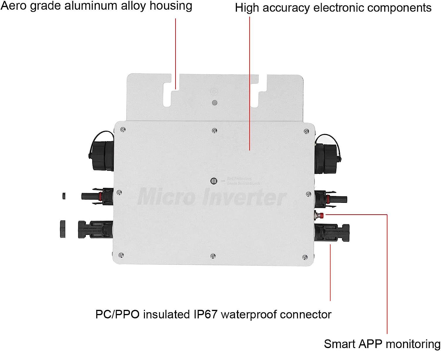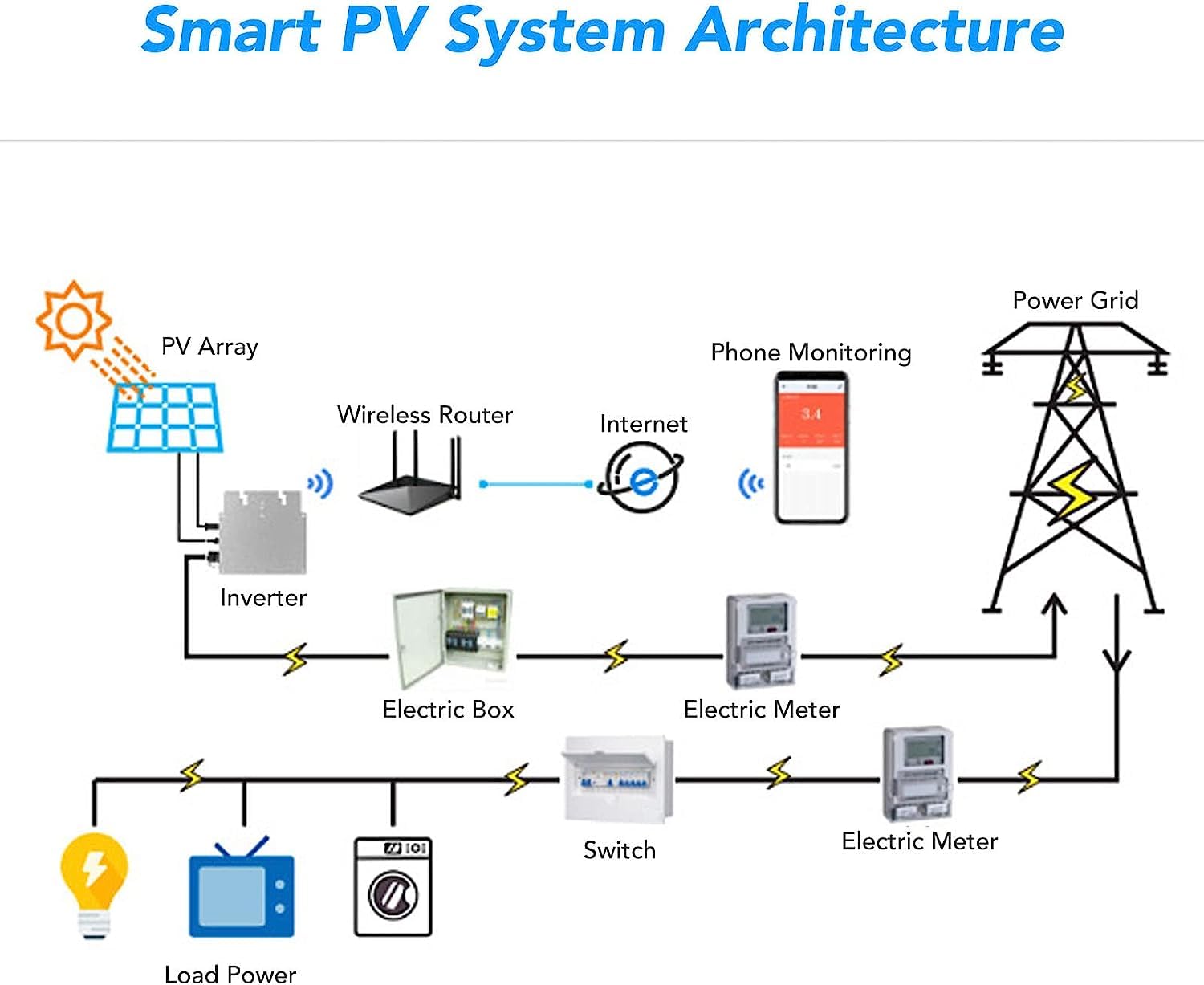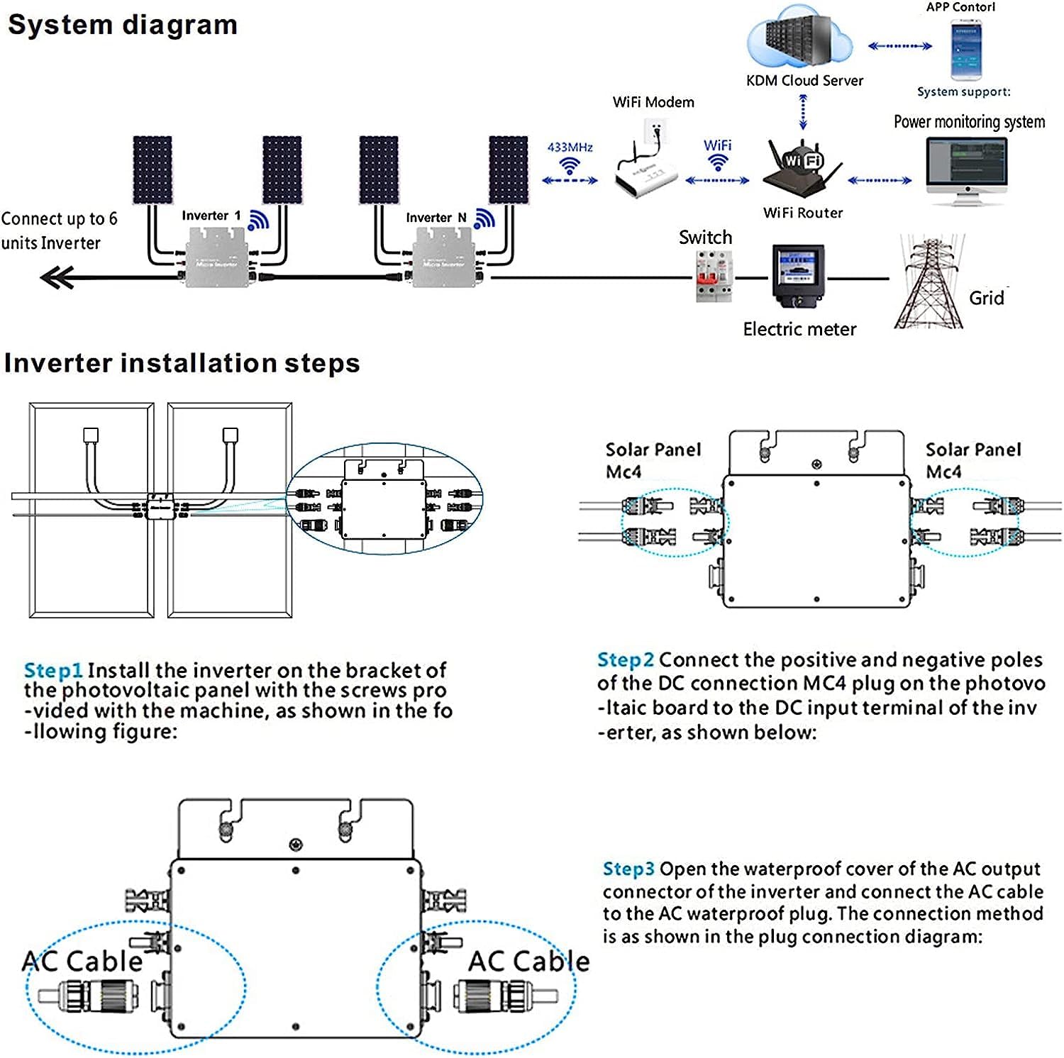 ["Note"] This inverter is suitable for solar modules with a maximum power of 2 x 375W, 22-60V. Stackable in series. For higher power requirements, the micro inverters can be stacked. Each MC4 branch must not exceed 375W. Our manual contains all the necessary details, please read it carefully before installation.