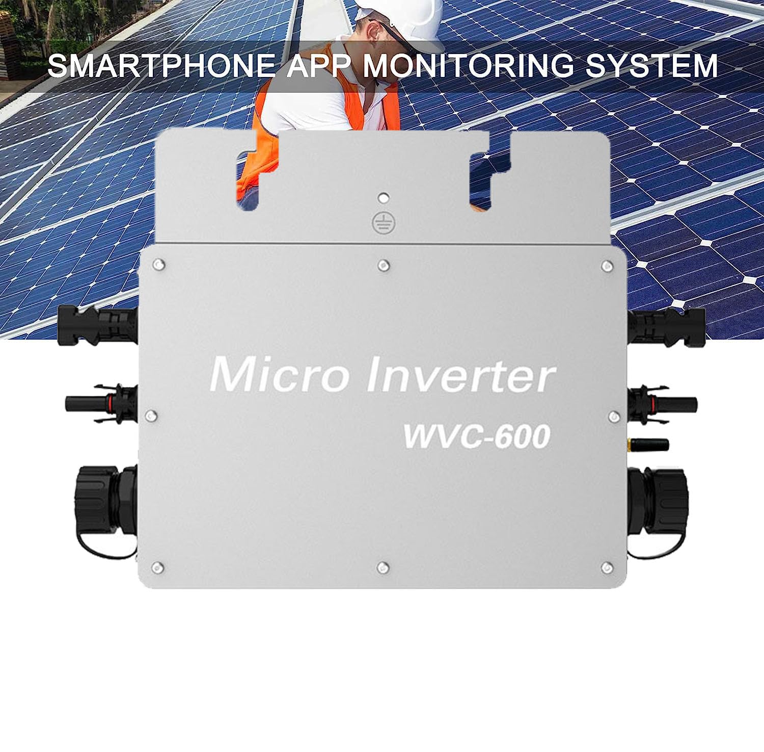 600W inverter balcony power plant, solar waterproof inverter, max PV input power 2 X 375 watts inverter solar with WLAN app for 2 solar panels, MPPT/IP65 waterproof 120-230V AC, silver.
