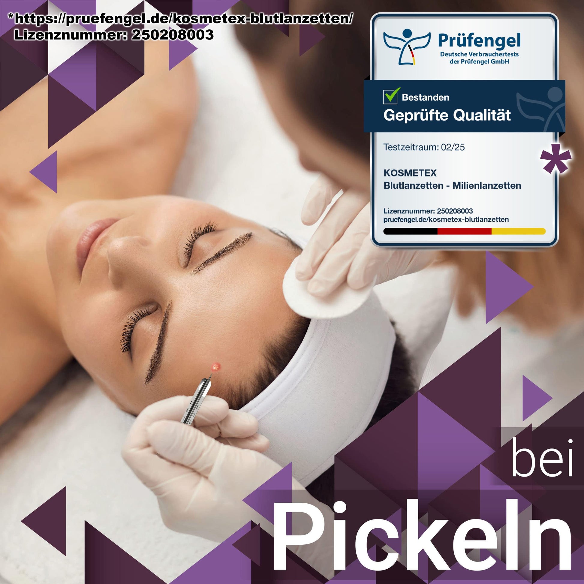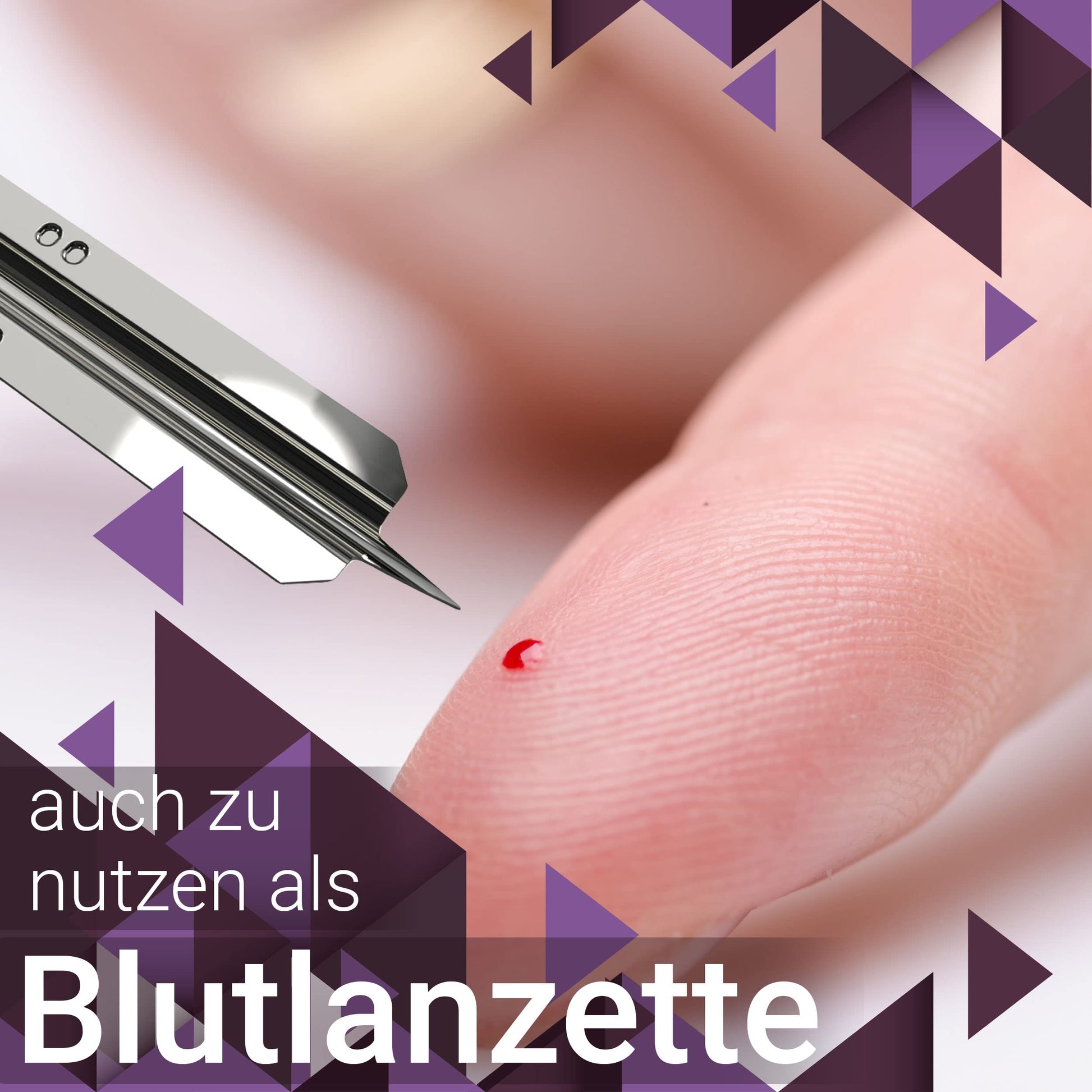 ["Lancet 2.0 - The one with the grip and really sharp.", "APPLICATION: Milia, pimples, ingrown hairs, blood lancet, splinters, household, hobbies", "HIGH QUALITY: The needle lancets are made of pure stainless steel.", "600x sterile and individually packaged lancets.", "Easiest application in cosmetics, medicine, home, animals, and hobbies."]