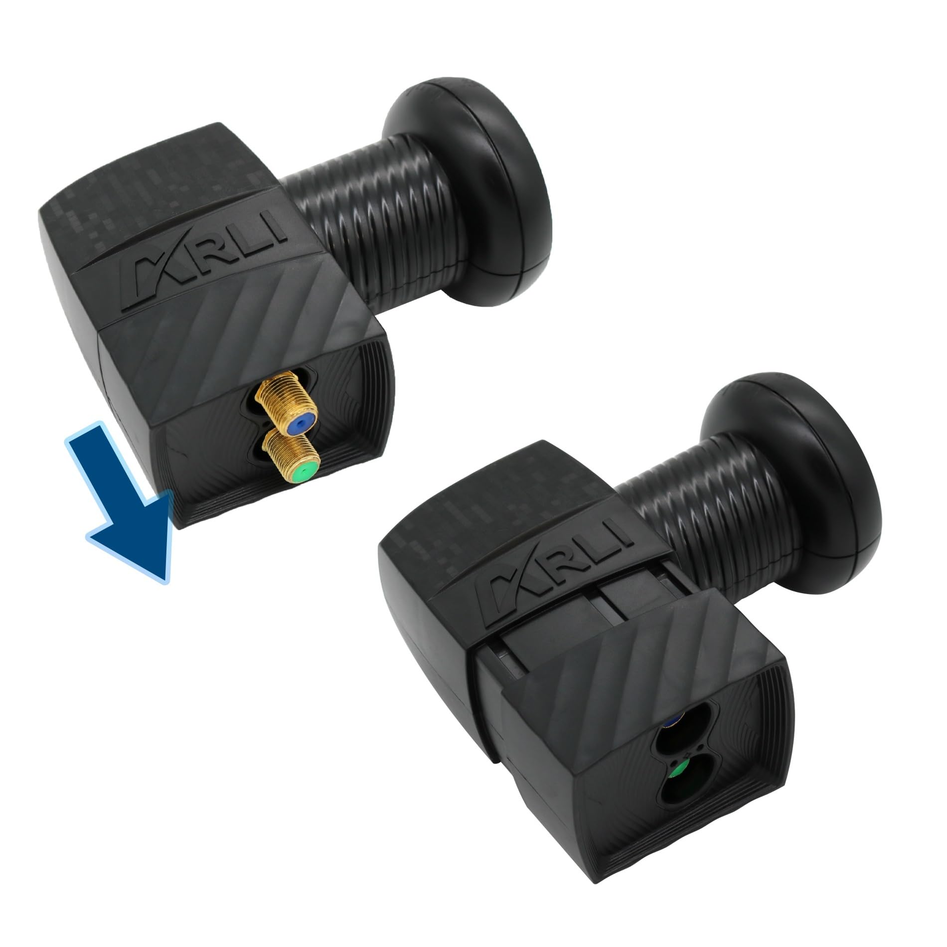Very low power consumption; Extremely cold and heat resistant; Very high polarization decoupling; High frequency stability; Input frequency range: 10.70 – 11.70 GHz / 11.70 – 12.75 GHz; Output frequency range: 950 – 1950 MHz / 1100 – 2150 MHz; Outputs: 2 (receiver direct connection); LO frequency: 9.75 / 10.60 GHz; Noise ratio 0.1 dB (typ.); Conversion gain: 60dB; Feed holder: 40 mm; Operating temperature: -30 °C ~ 70 °C; Weather protection",