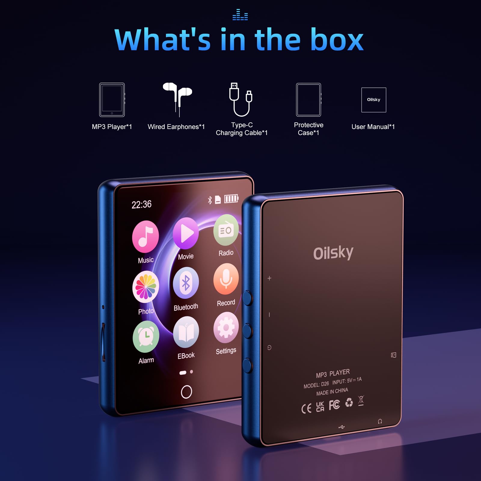 64GB MP3 Player Bluetooth 5.0, Oilsky Kids MP3 Player with Headphones, 2.8" Touchscreen Music Player with Speaker, Portable MP3 Digital Audio Player with FM Radio, E-Book (Black)