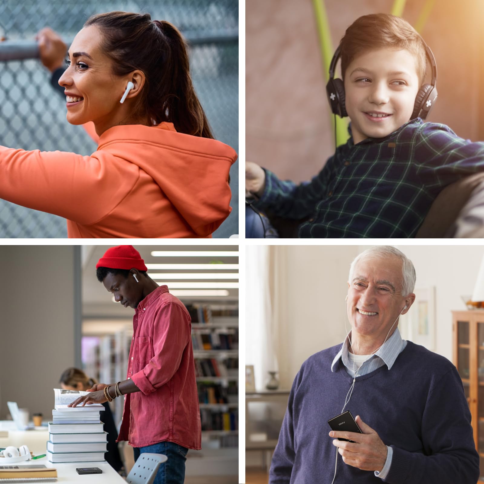 ["【Hi-Fi Lossless Sound MP3】Built-in powerful audio decoder chip that can convert the source code better into the original sound and provide a HiFi sound that comes as close to the original as possible. For a better music experience, specially designed for music lovers.","【Bluetooth 5.0 Music Player】With Bluetooth 5.0, you can wirelessly pair with your Bluetooth headphones or Bluetooth speakers, and the Bluetooth will automatically connect to your device and continue playing the song where you left off. Tips: cannot connect to phone and car via Bluetooth.","【64GB Mp3 Player】This Bluetooth mp3 player has a built-in 64GB flash memory, offering better durability than just a microSD expanded memory. Max 128GB expansion if needed. 2.8\" Full Touchscreen MP3 makes operation and navigation easy.","【Multifunctional Kids Music Player】This portable mp3 player can also meet your other occasional needs such as FM radio, voice recorder, photos, e-book, alarm, stopwatch. It would be the best gift for kids, friends, and family for Christmas or Thanksgiving.","【Package List】1 x 64GB mp3 player, 1 x Wired earphones, 1 x Protective case, 1 x USB-C cable, 1 x User manual. We believe in honesty and fairness and will always work to find the best possible solution for any problem that may arise. Contact us anytime and we will help you."]