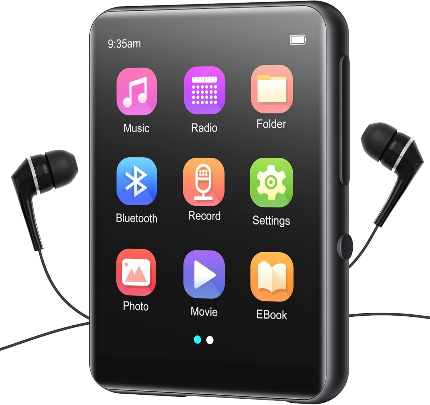 "đăWireless 5.3 Bluetooth, free listeningăThe MP3 player uses Bluetooth 5.3 technology, with a connection range of up to 5 meters, faster transmission speed, more stable performance, and stronger anti-interference capability. You can connect to Bluetooth speakers and Bluetooth headsets to get rid of the shackles of wired headsets."