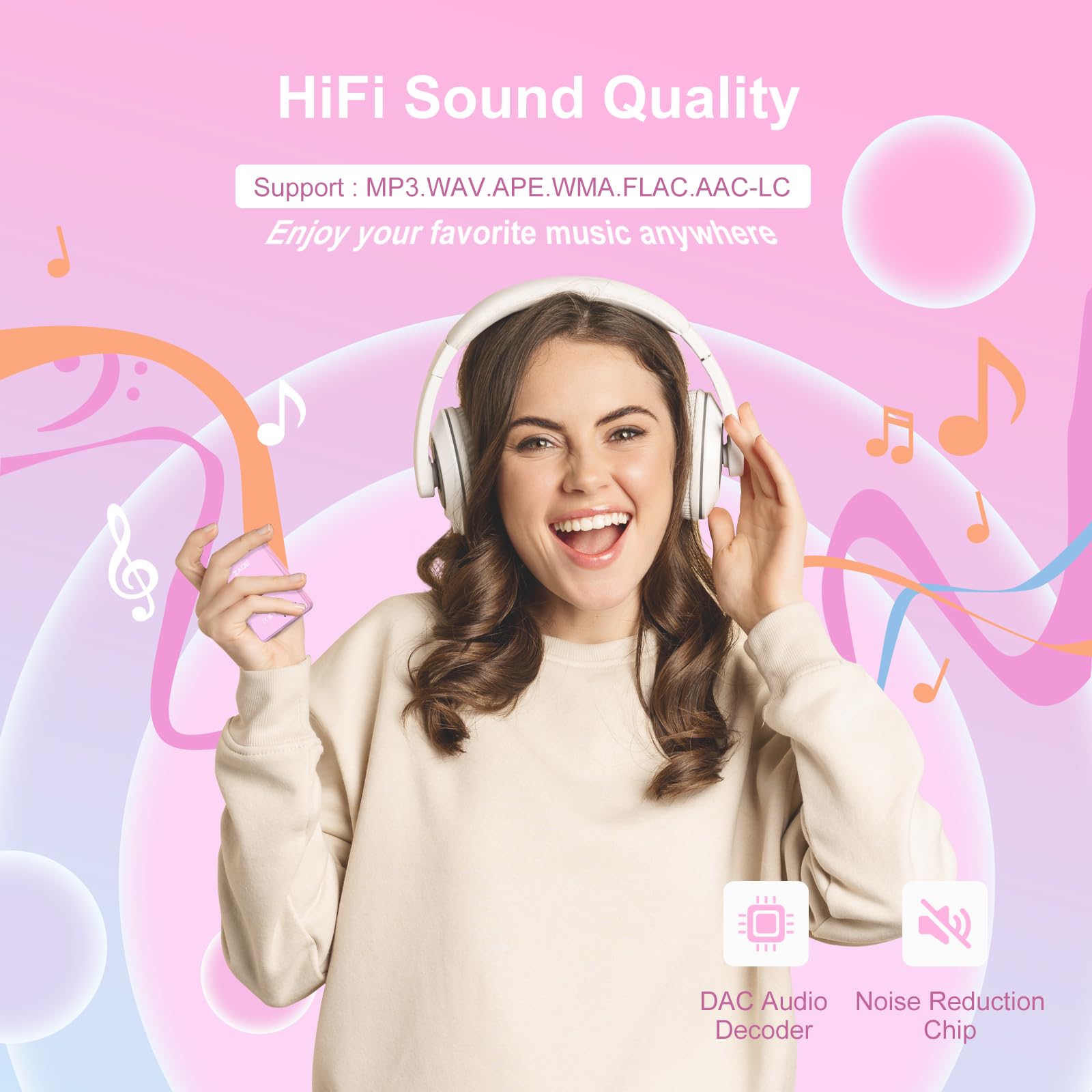 64GB MP3 player with Bluetooth 5.3, 2.4 inch full touchscreen, portable music player with HiFi lossless digital audio, speaker, FM radio, E-Book, supports up to 128GB. Available in pink.