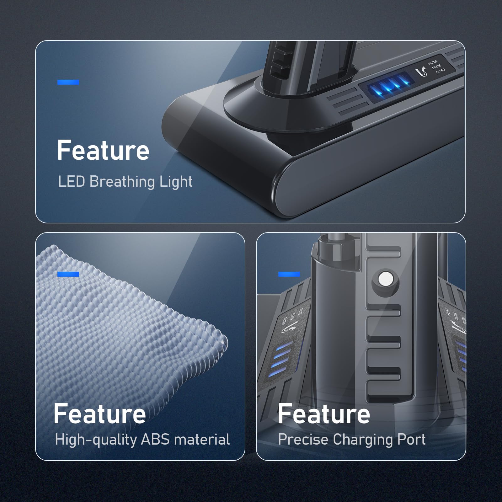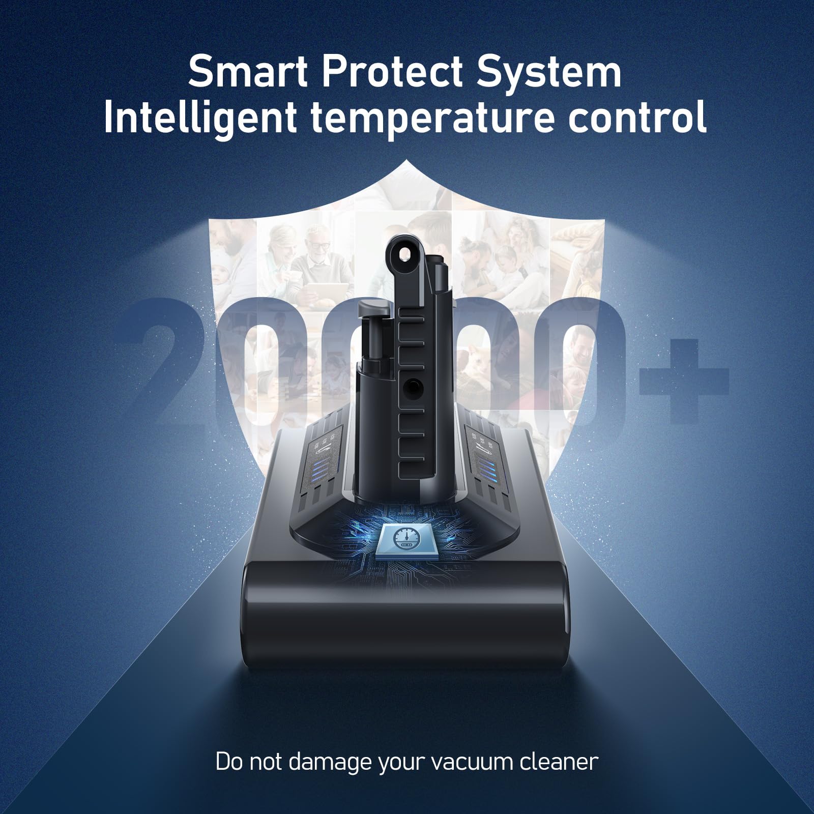 "【High Safety】Our lithium-ion battery features advanced protection functions such as overcharge protection, deep discharge protection, over-voltage protection, overcurrent protection, and overheat protection. These functions ensure safe usage and optimal performance of your vacuum cleaner.",