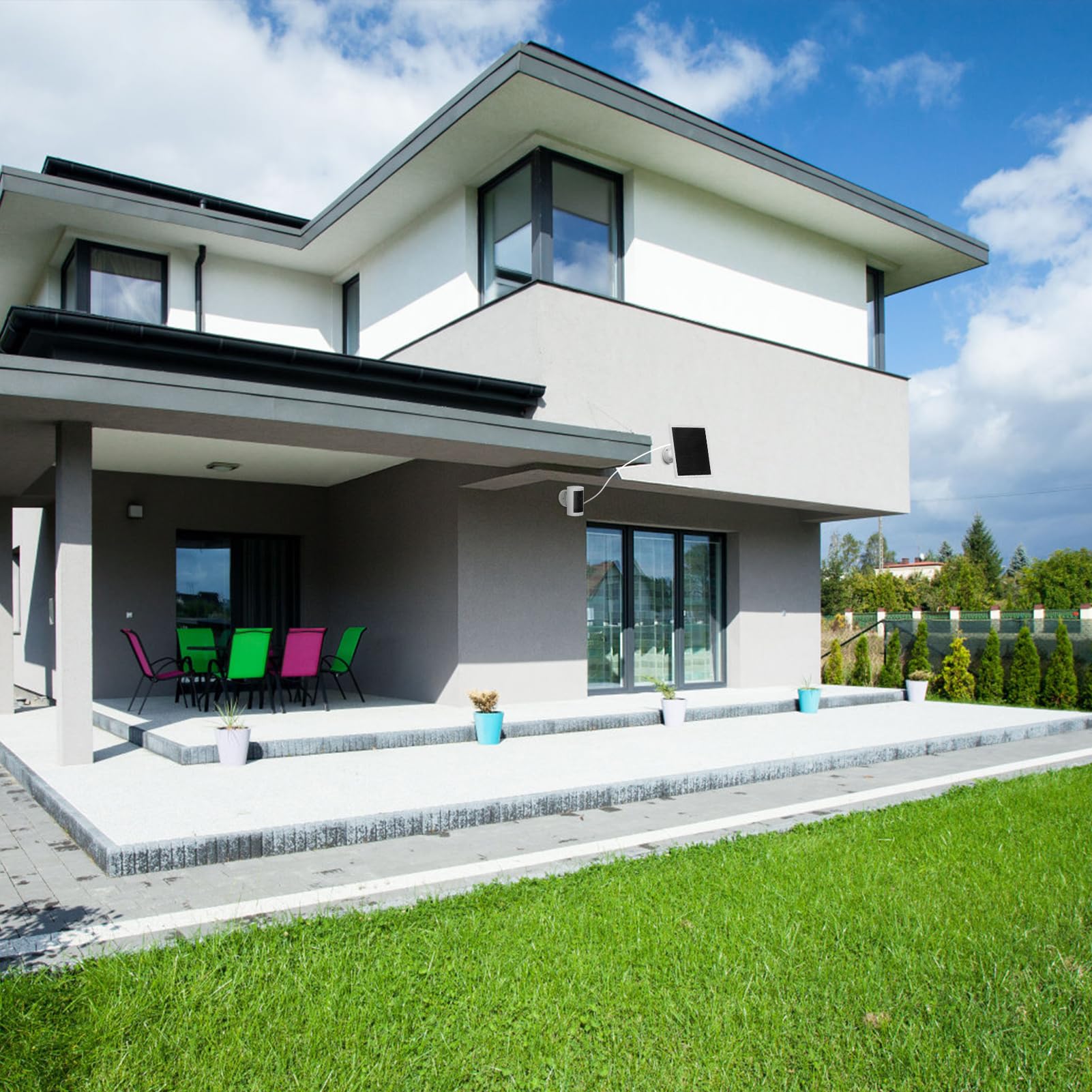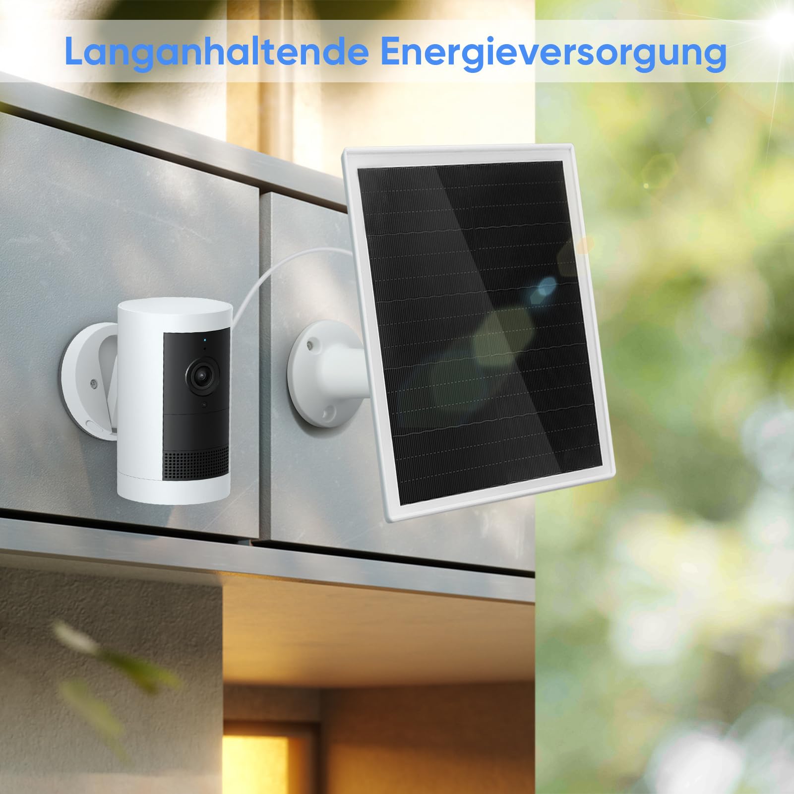 ["Solar panel for Ring Camera: This solar panel is specially designed for Ring Camera, eliminating the need for frequent battery replacements and power adapters, providing a sustainable power solution that ensures continuous camera functionality.","Highly efficient sunlight conversion: The monocrystalline silicon solar panel maximizes sunlight conversion, providing reliable and long-lasting power supply for your camera, reducing the need for frequent recharging.","Adjustable bracket: The camera solar panel comes with a 360° rotating bracket and cable for flexible positioning to capture maximum sunlight, allowing installation options on eaves, exterior walls, tree stumps, and more.","IP66 Waterproof: The outdoor solar panel is made of high-quality ABS material, providing exceptional resistance to high temperatures and waterproofing, ensuring panel longevity under various weather conditions and effective protection against environmental challenges.","Fast power supply: This solar panel for surveillance camera offers a maximum output power of 6W, ensuring fast and reliable power supply for your surveillance camera. It comes equipped with a DC3.5 cable for seamless connectivity.","","","","",""]