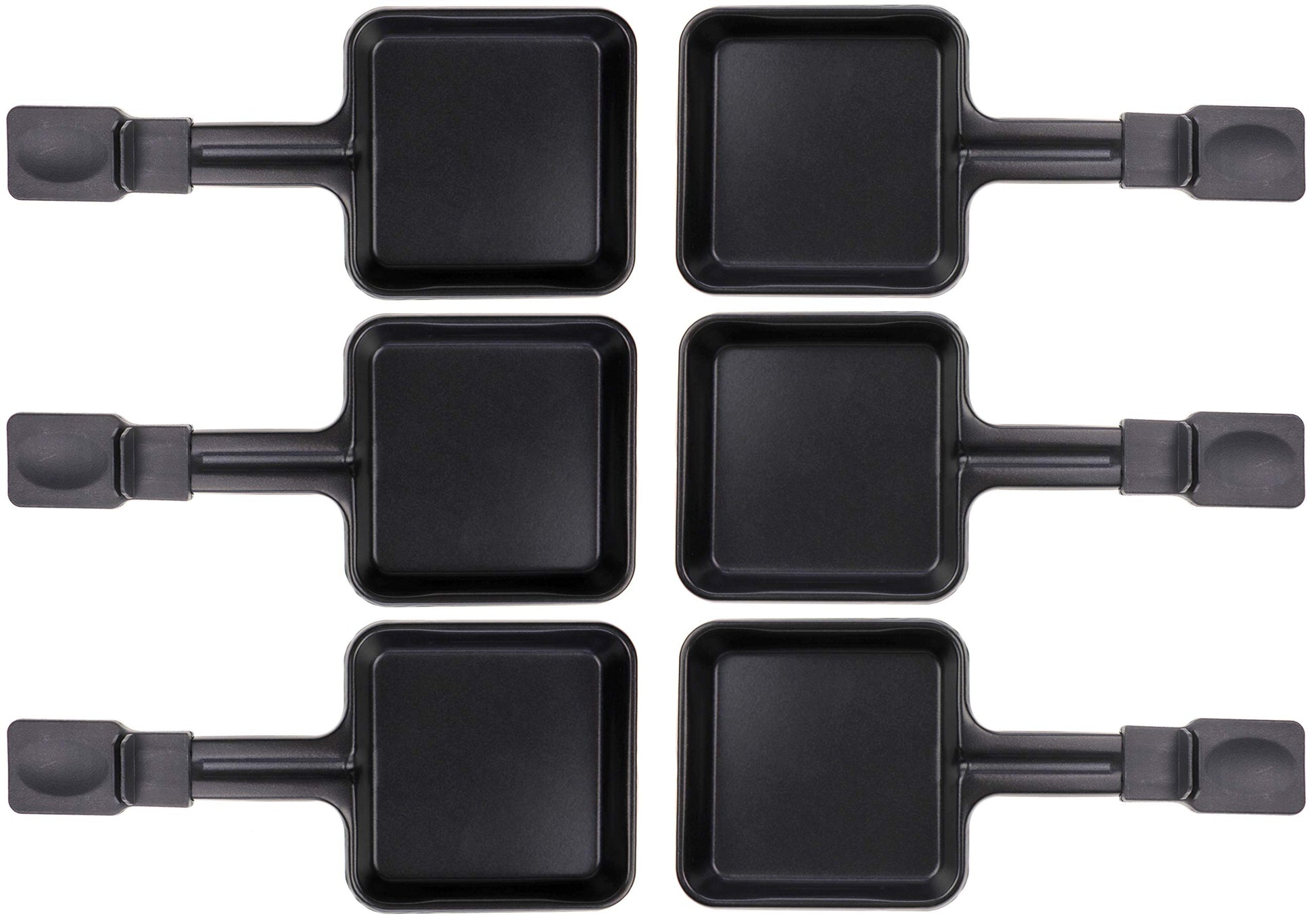 6x Raclette pans 23178 10x10cm, Extra Long Handle, Universal for Raclettes (dimensions see text)