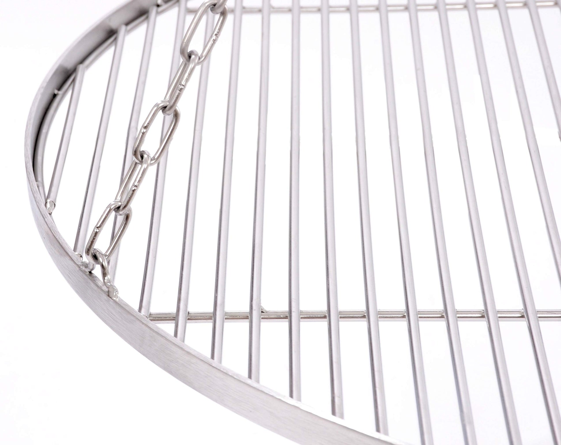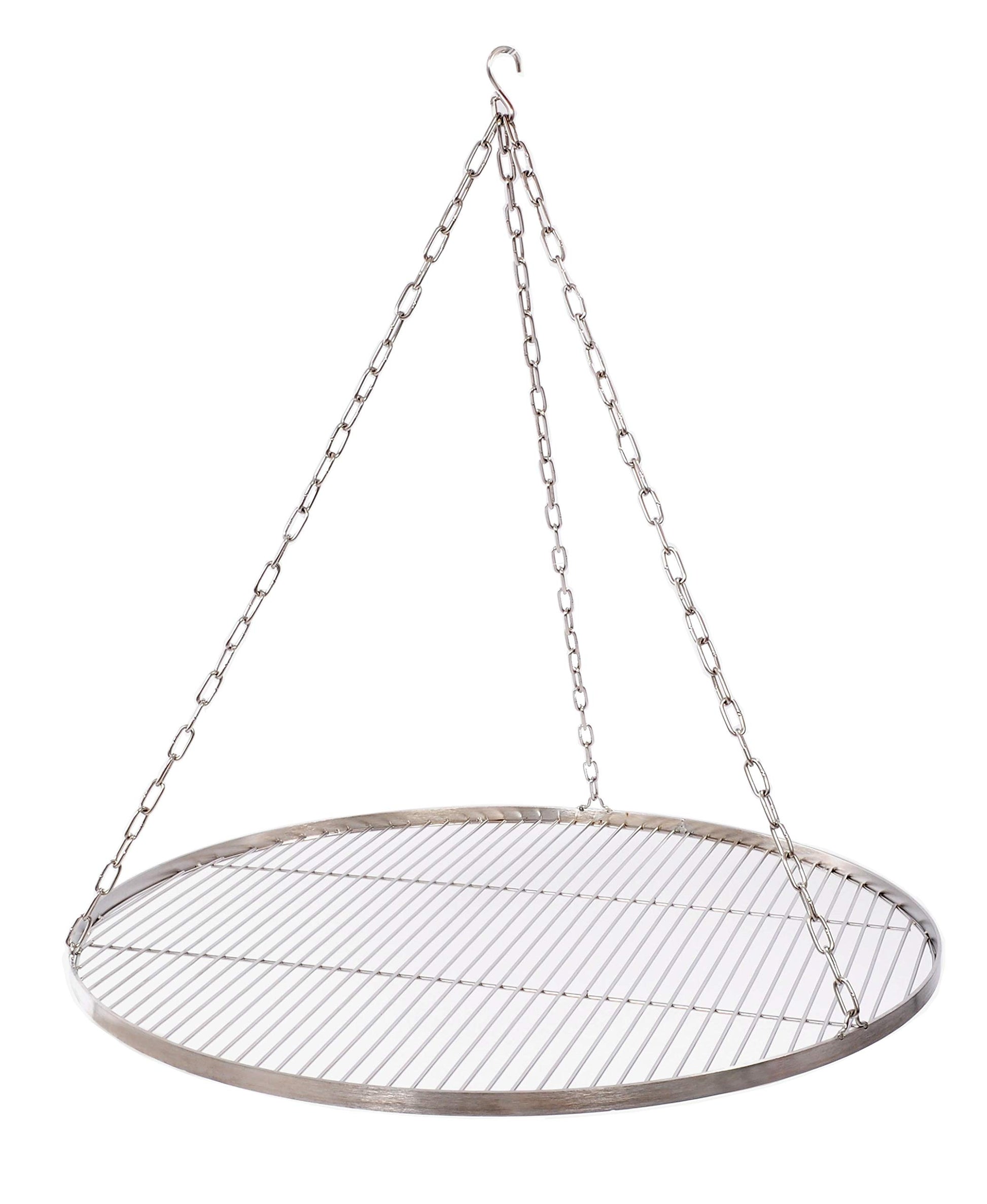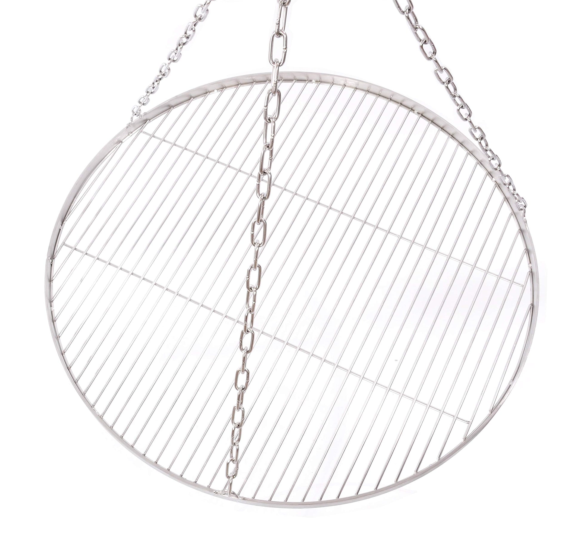 70 cm stainless steel grill grate for tripod swing grill, with chain and 14 mm rod spacing.