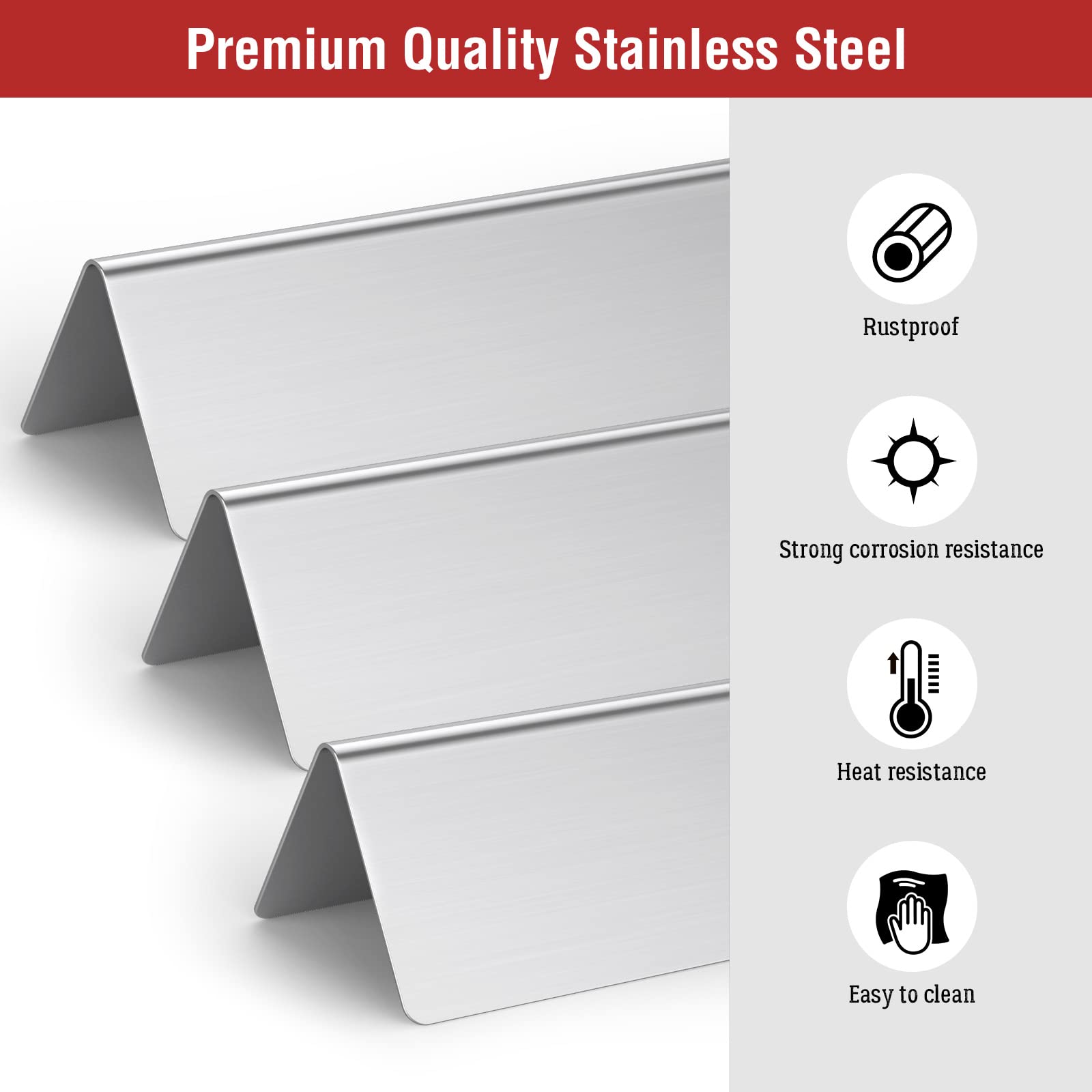 2. 7636 Stainless Steel Flavorizer Bar (burner cover) made of high-quality steel porcelain. Stainless steel heat plates are easy to clean, significantly reducing damage to the grates caused by grease. The durable effect improves the overall lifespan of the grates. Each Flavorizer bar measures 38.9 x 6.5 x 6.4 cm and includes 5 flavor bars.
