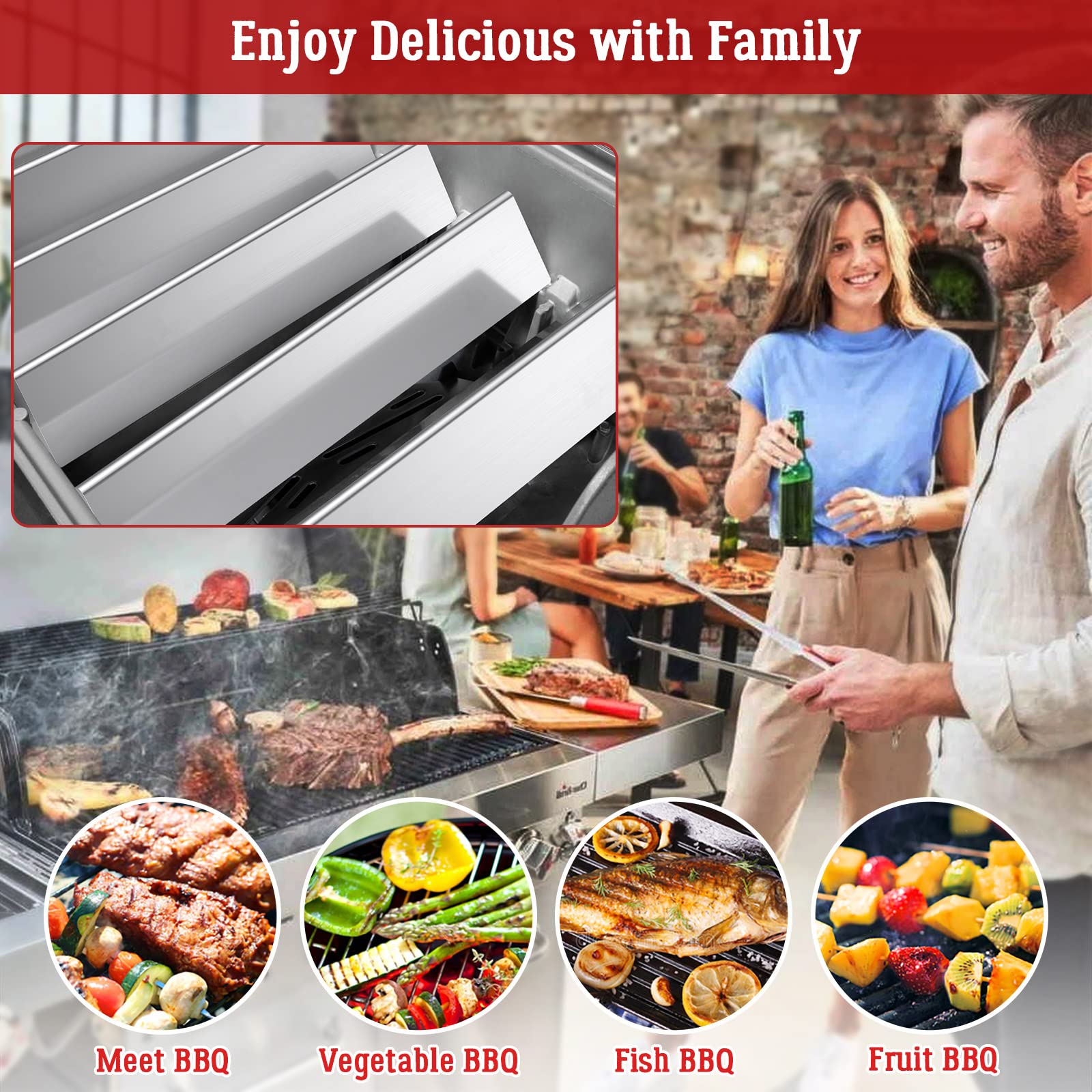 3. 7636 Heat Plate, improved high-quality material that retains the shape of the comb. The heat plate separates dripping fat, protects the gas burner, and prevents fat from directly exploding into the flame. And distribute heat evenly. At the same time, it eliminates the greasy feeling of the meat and makes the meat more delicious.