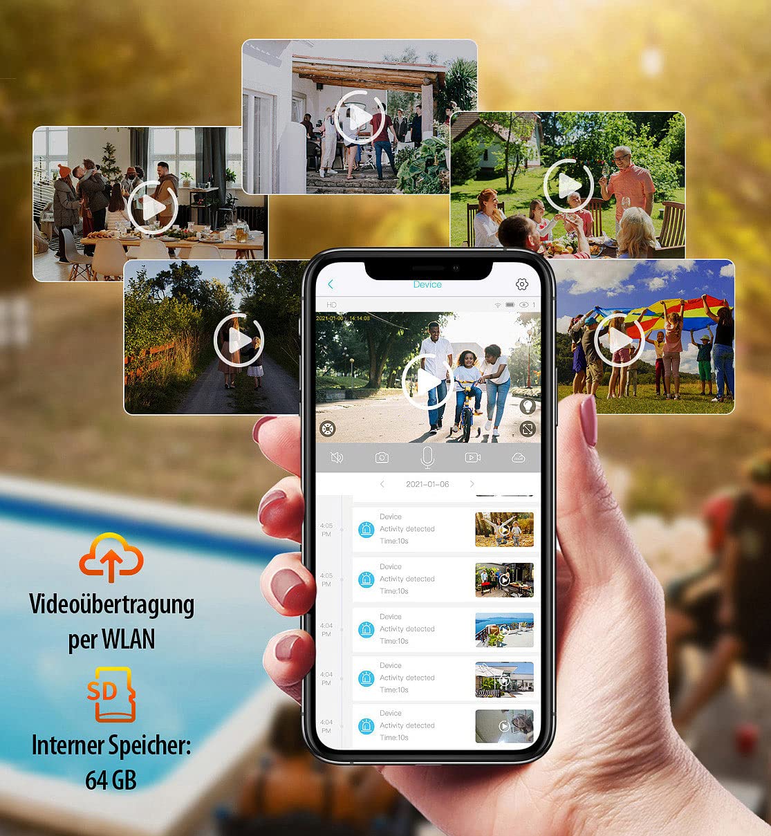 "H.265 video compression: high recording quality with low storage requirements • Motion detection by image sensor for automatic recording start • 6 white LEDs for color night vision and 6 LEDs for infrared night vision: up to 25 m, automatically switch on in twilight and darkness • Compatible with Smart Life system: ELESION, as well as Smart Life and Tuya devices can be combined into a smart home system on request • Weatherproof housing: IP66"
