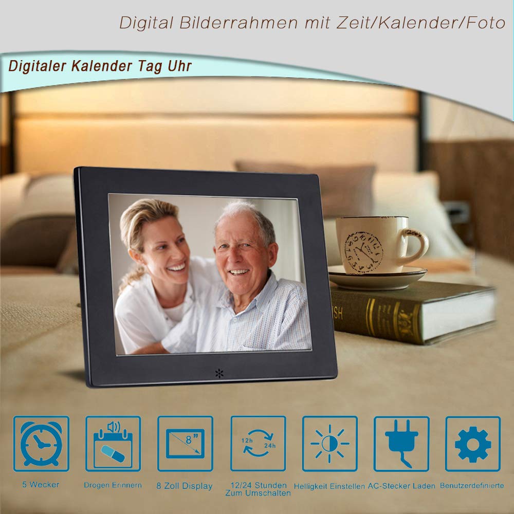 "💕HUMANIZED FEATURES & EASY OPERATION: Programmable medication reminders for your health, 8 programmable reminders for your appointments, 8 inch 1024 * 768 HD LCD, Digital Calendar Clock displays precise time in a large, bright, and clear display visible from the entire room. Its bold, sharp, and glare-free display is invaluable for visually impaired and older people.",