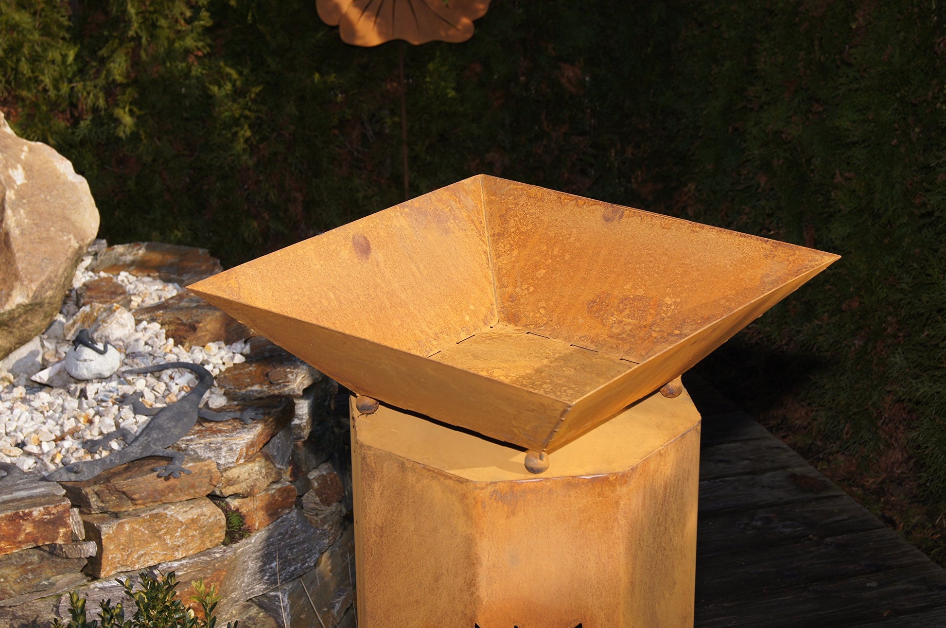8-sided pillar Pandora + bowl Classic noble rust metal garden decoration garden stele.