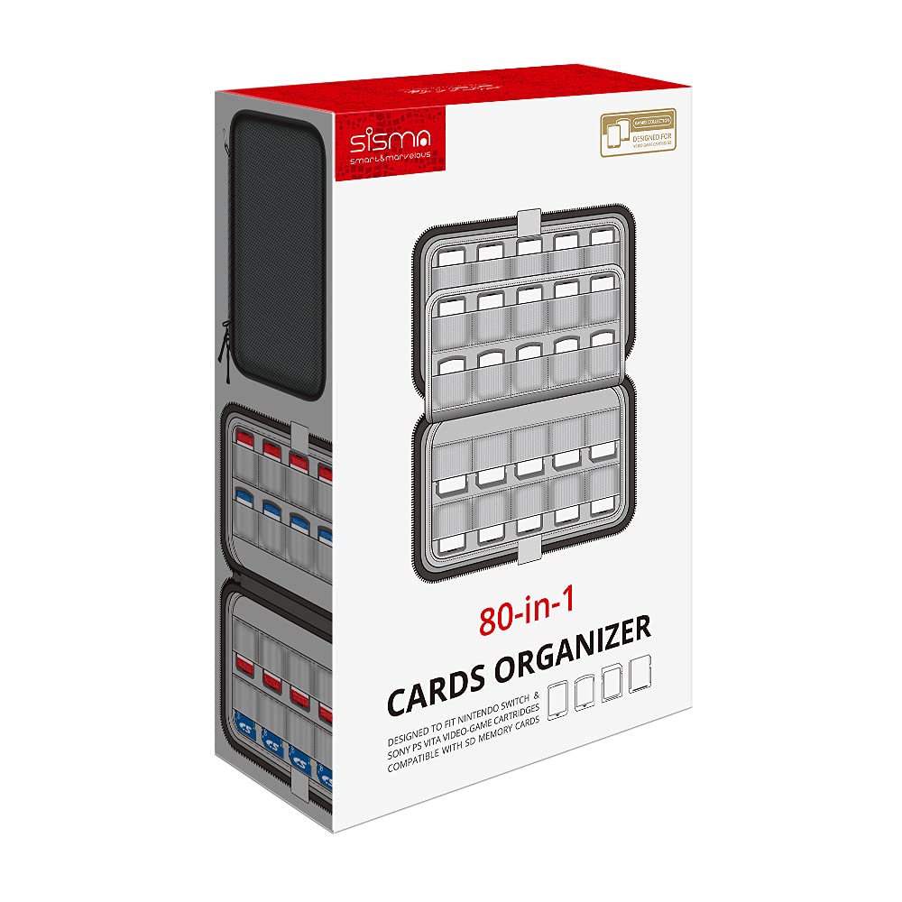 "Storage for up to 80 games or memory cards. Compatible with Nintendo Switch/Switch 2 games, PS Vita games, SD memory cards, PS Vita memory cards"