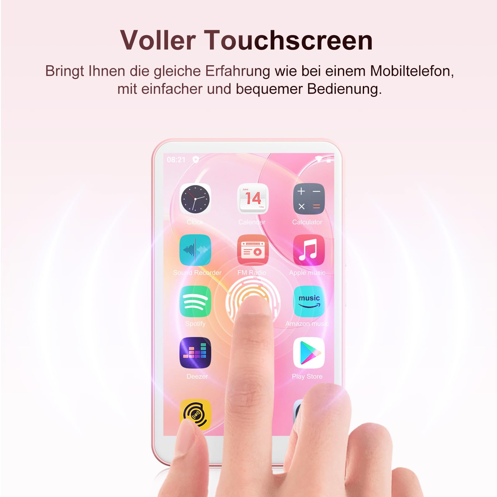 80GB MP3 player with Bluetooth and WLAN, MP3 & MP4 music player, Oilsky 4 inch 1080P touchscreen video player, portable Android Spotify player with Play Store app (Pink)