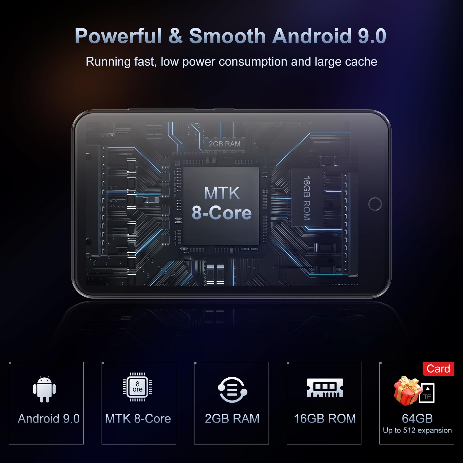 80GB WiFi MP3 player with Bluetooth, 4-inch touchscreen Android 9.0 MTK 8-core Spotify MP4 player, portable music player with speaker, with Play Store app, support for install/uninstall.