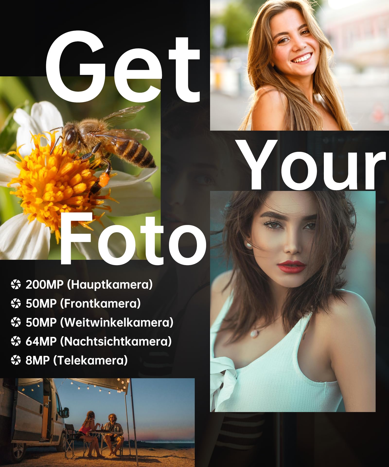 【200MP Main Camera+50MP Front Camera】8849 Tank 3 Pro outdoor phone without contract with 200MP main camera, you can capture images with remarkable clarity and details; The 50MP front camera supports beauty selfies; Of course, if you like night shots, the outdoor smartphone with improved 64MP night vision camera can capture many beautiful moments that ordinary phones cannot. The 50MP wide-angle camera for a wider field of view, 8MP telephoto camera makes the photos more artistic.